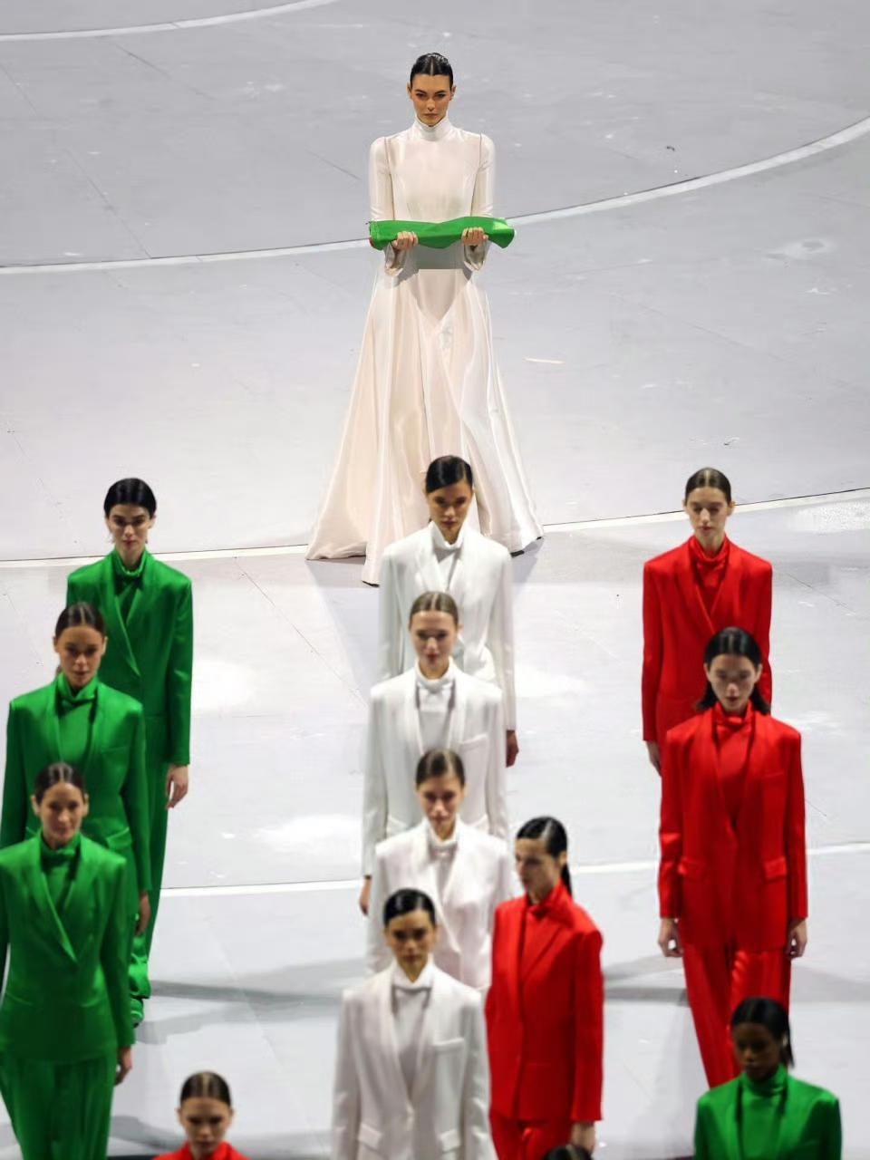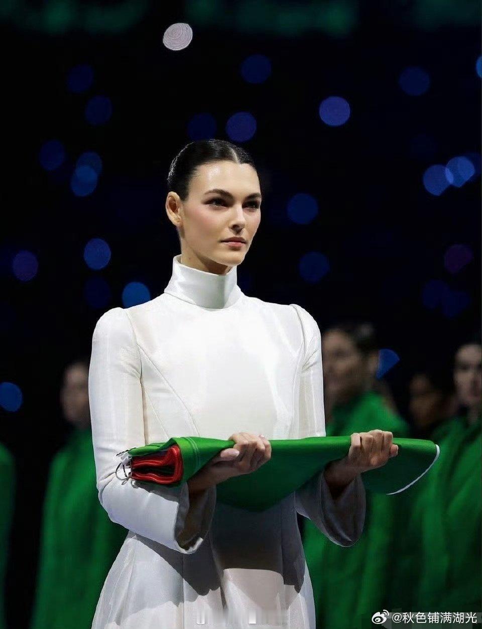 真养眼!米兰冬奥会开幕式上,由超级模特们走着秀把国旗交给升旗手,是意大利风格。 米兰冬奥会开幕式的升旗仪式以极具创意的方式呈现,由超模身着意大利国旗红、白、绿三色服饰列队登场,象征性地组成流动的国旗画面,最终由27岁意大利超模维多利亚·切瑞蒂(Vittoria Ceretti)手捧国旗缓缓交予升旗手,这一设计融合了米兰的时尚基因与奥运庄重仪式,被网友戏称“分不清是冬奥会还是米兰时装周”。
