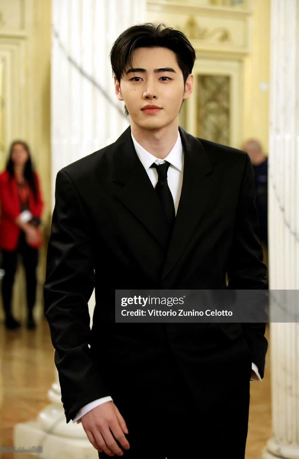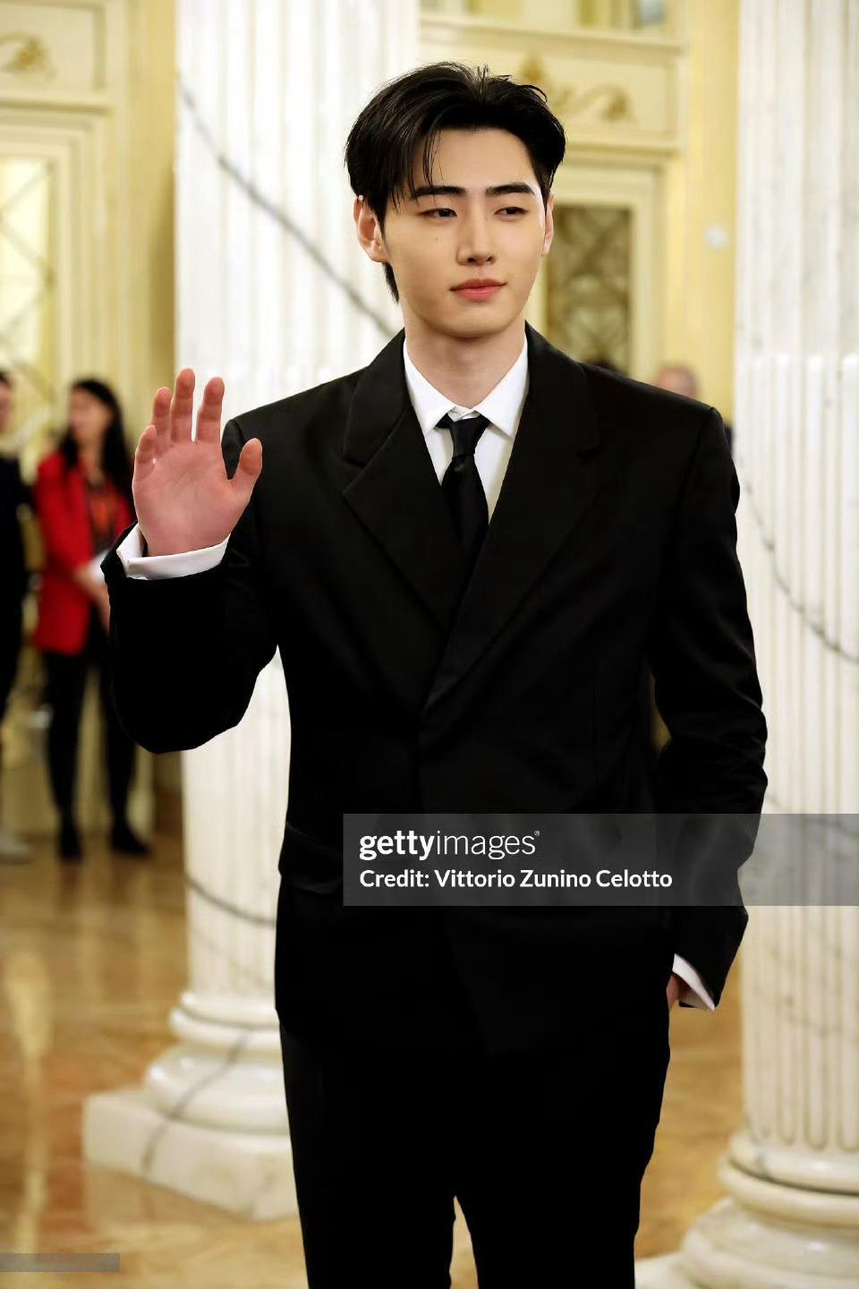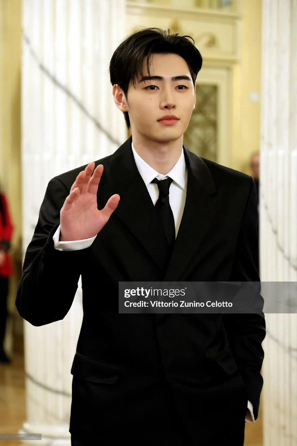 米兰冬奥会开幕式红毯朴成训,黑色正装帅气!