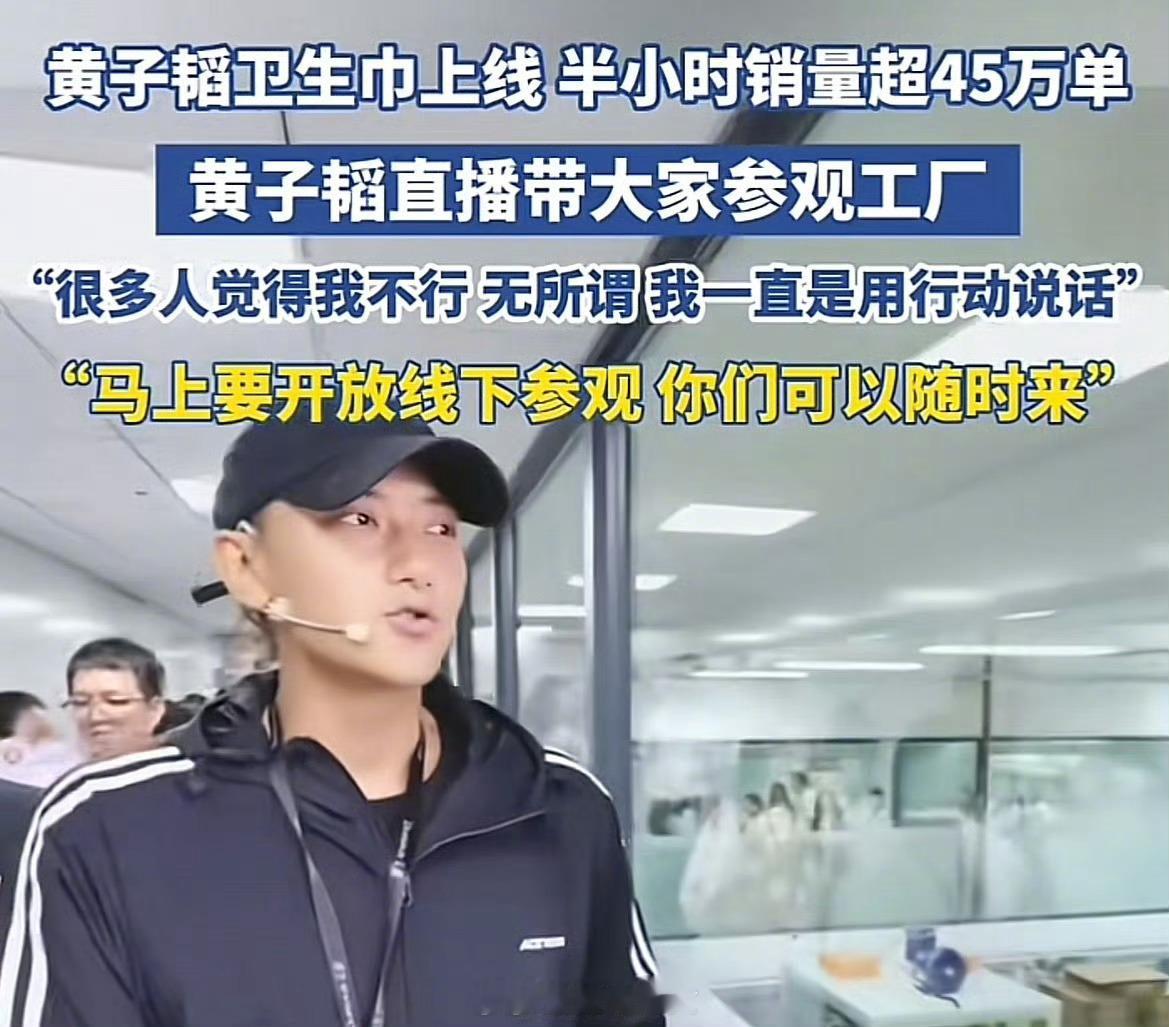 黄子韬自曝卫生巾工厂现状黄子韬跨界涉足卫生巾产业始于去年3月,一年,就要几个亿回本的话。这个回报率……