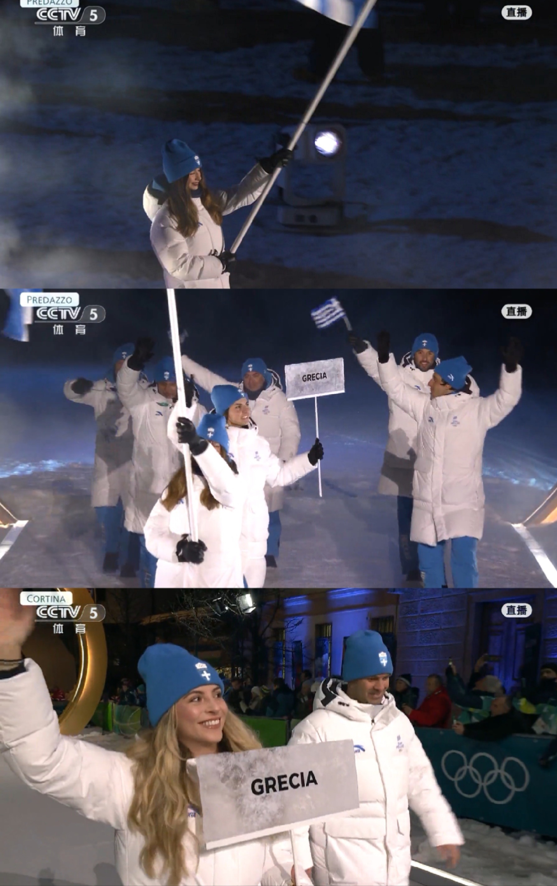米兰开幕首支队伍出场穿的是安踏 昨天立的FLAG,今天3点好歹没鸽!今年开幕式衣服这块确实是一大亮点,特别是代表团入场环节,最开始的时候就听见梁毅苗开场解说, 首个代表团身着安踏亮相。早前各种预告,今年米兰冬奥会写满了“蓝的视觉盛宴”既视感,作为奥林匹克的发源地,这次开场希腊的蓝色也是经典融入高级的亮相,蓝色众多里有自己独特的风格。回看的时候,搜了下希腊奥委会介绍的,安踏该系列的设计灵感来源于希腊国旗的蓝色调。图形线条灵感来自希腊奥林匹克委员会徽章中的波浪图案,而山形图案细节则参考了希腊最高的山峰——奥林匹斯山,将当代运动美学与希腊文化遗产融为一体。G社图呈现出来的效果还蛮好看的,和雪景搭配,白色更温和,这款蓝色底色在夜色的光感中会显得更亮。把运动美学和千年文化遗产轻轻一扣,优雅又现代,旗手小姐姐和举牌小姐姐一笑起来,整个气质拉满了!