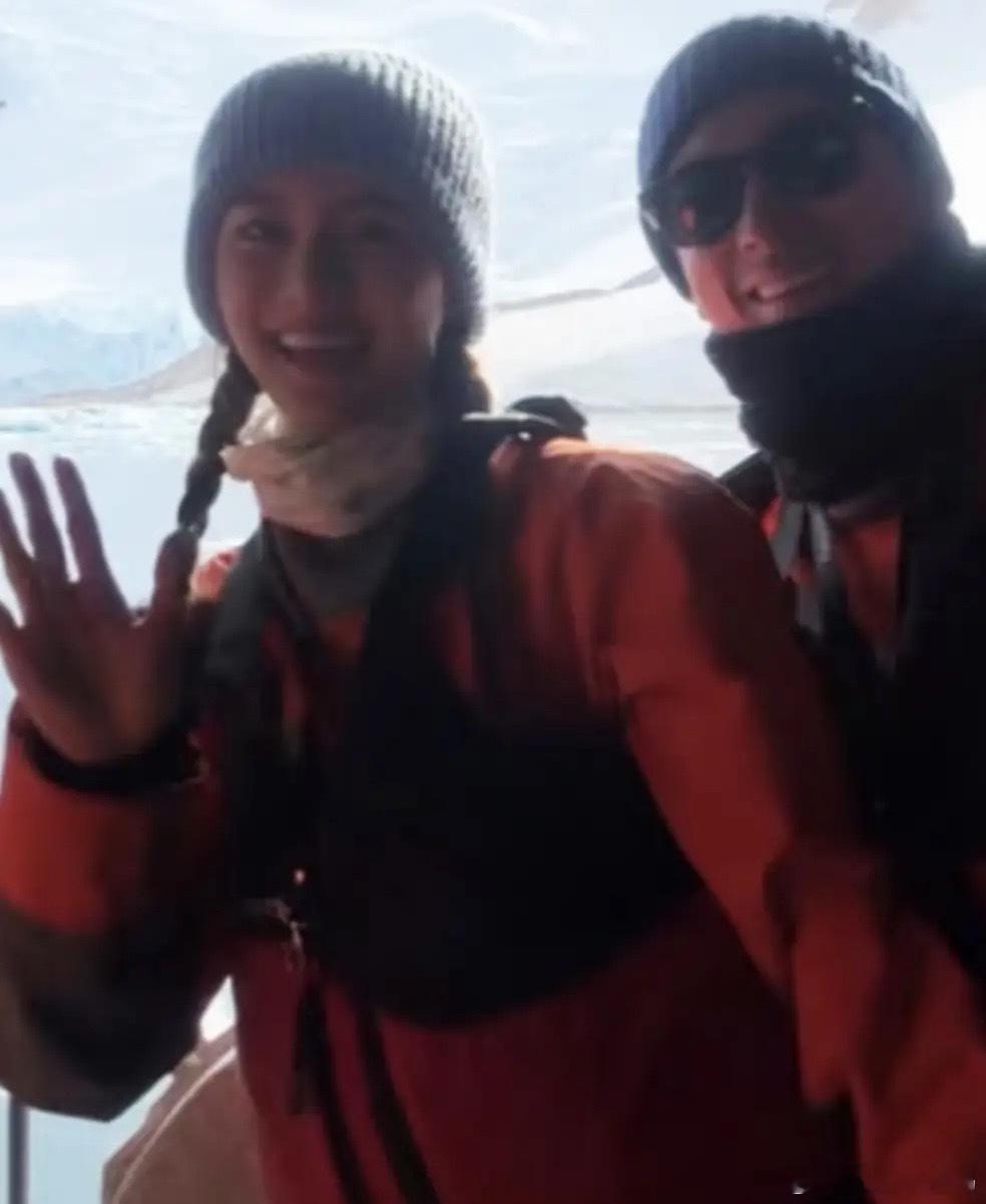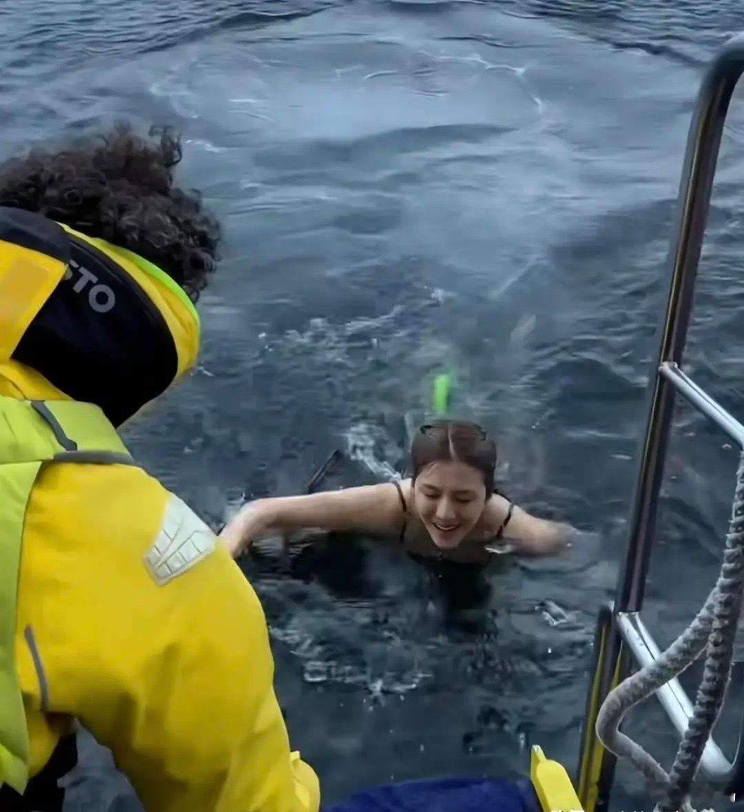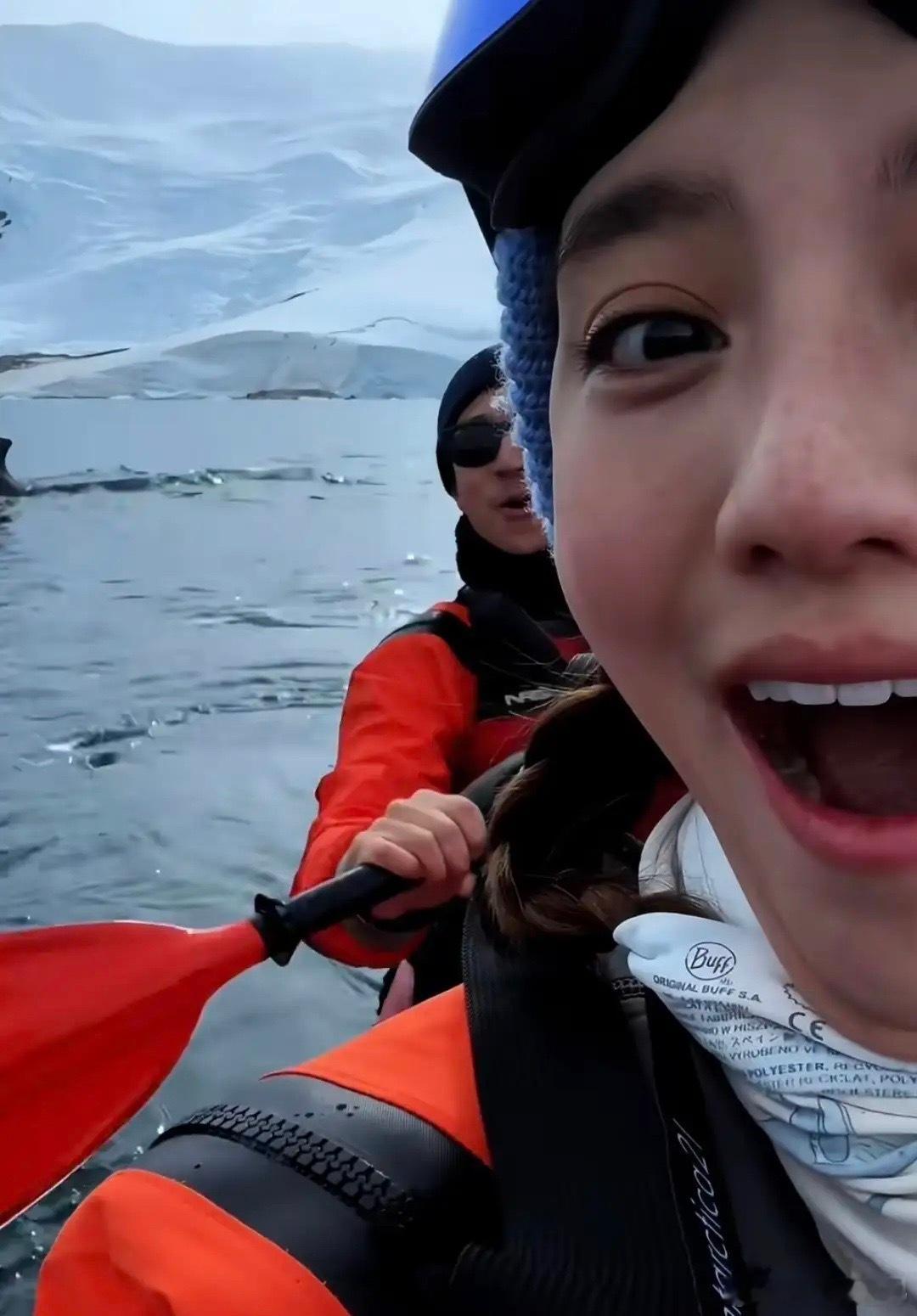 吴千语和老公施伯雄去南极度假看企鹅!零下30度的天气,换上泳衣,下水去游泳,身体素质好强,上船的时候脸冻麻木了。