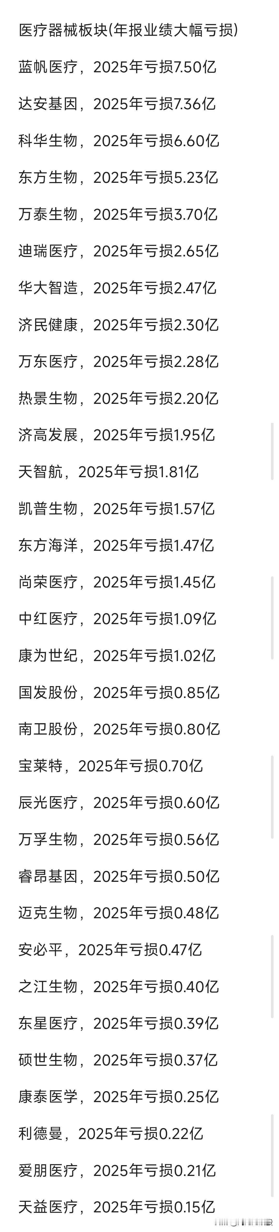 医疗器械板块“年度业绩”复盘:大幅亏损公司不少。比如近期热度非常高的“之江生物”出现亏损……大幅增长的公司也不少,分别汇总如下。 关注“刘姥姥”,精彩分享真不少(麻烦亲们:点赞,收藏,分享)。 特别提醒:本文涉及内容及个股,仅供交流与参考,不是荐股,不得以此作为买卖依据,盈亏自负。制药板块 医疗行业股票 医疗健康板块 医疗器械股票 医疗器械行业