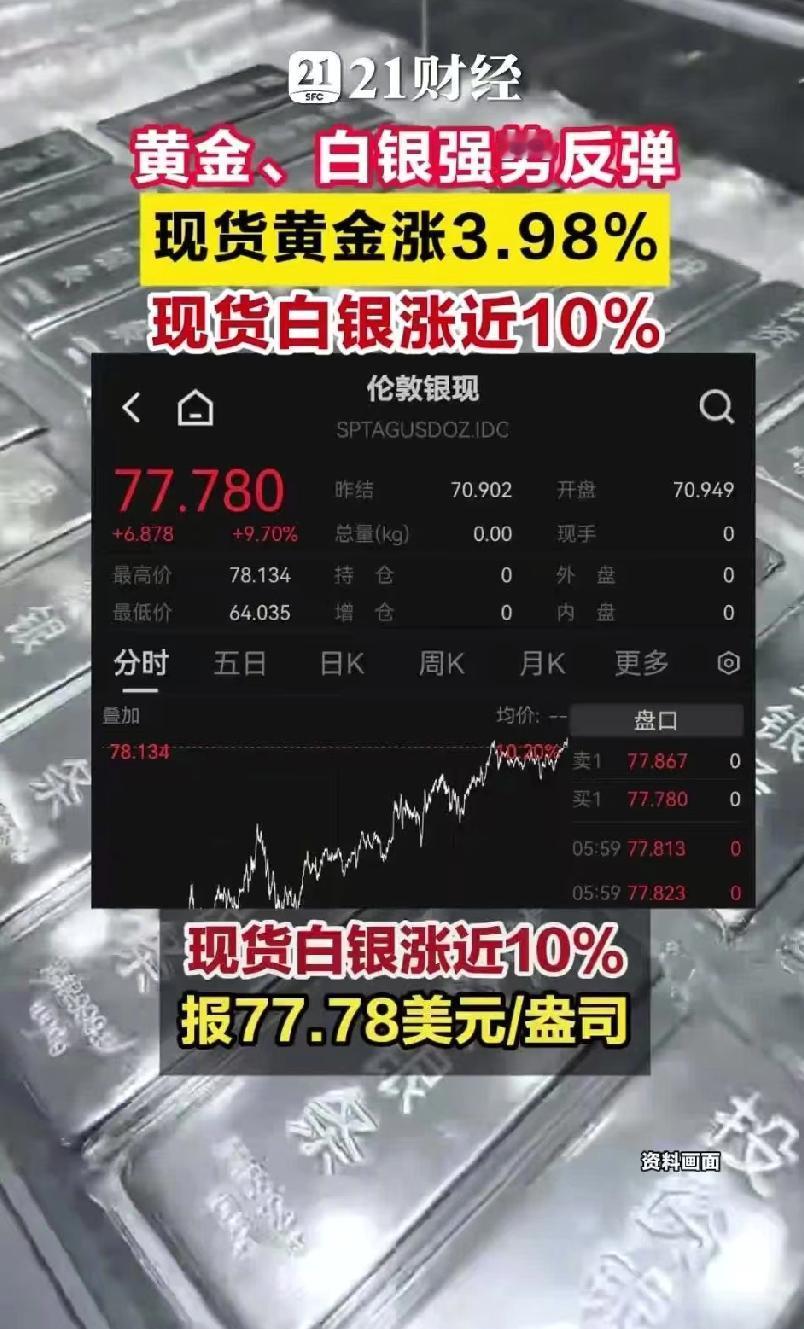金价白银一天暴涨,政策变脸加地缘乱局,真能一直涨? 2月6日黄金涨近4%,白银狂飙快10%,比前阵子暴跌时还猛。不是什么好消息突然来了,而是大家发现之前怕的加息可能根本搞不下去。 美国欠债38万亿,光利息都比军费高,真要加息怕是自己先扛不住。美联储12月就开始买国债,流动性其实悄悄松了。 俄乌那边又动手打能源设施,美国内部预算也吵翻天,美元信用越来越不靠谱,买金子银子更像是找条退路。 白银更特别,光伏、新能源车都在抢着用,但挖出来的银子每年就多那么一丁点,库存快见底了,现货已经开始紧张。 不过价格已经离去年高点不远,花旗都警告可能跌回3000美元以下。ETF买得猛,期权杠杆也高,空单一回头,涨得就更快。 再涨得看后面装机量和铜替代银的技术有没有突破。 Hunt兄弟当年炒白银爆雷的事,老一辈还记得。
