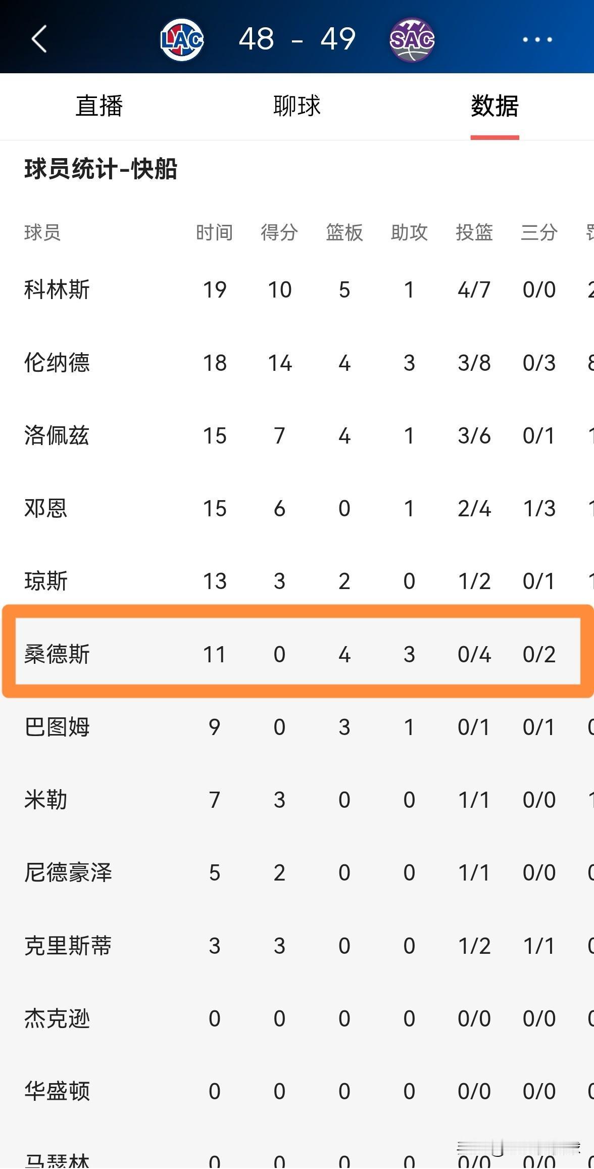 快船新星桑德斯真是太气人了!在今天进行的快船和国王的焦点战中,目前双方半场战罢,快船以48:49落后对手1分。在前两节比赛中,桑德斯的进攻状态非常的低迷,他在替补出战的11分钟里,投篮4中0,其中三分球2中0怒砍0分,还有1次失误和2次犯规,他的场上正负值为-1。 作为快船重点培养的青年才俊之一,桑德斯在上半场比赛中的表现真是太让人生气了,气的我连午饭都不想吃了。