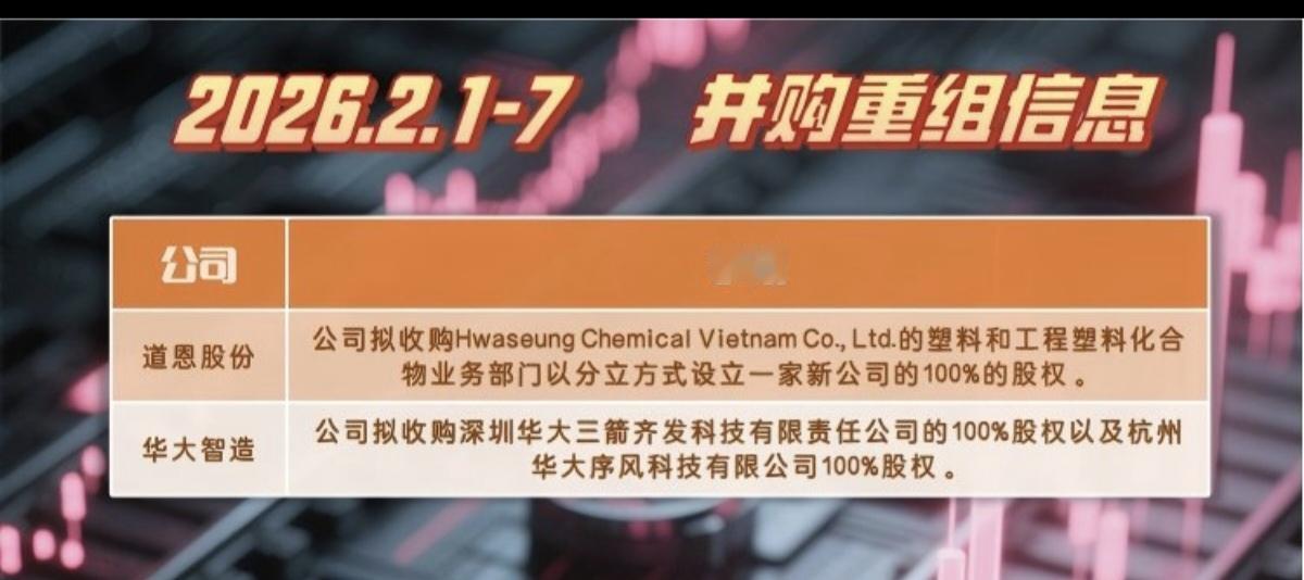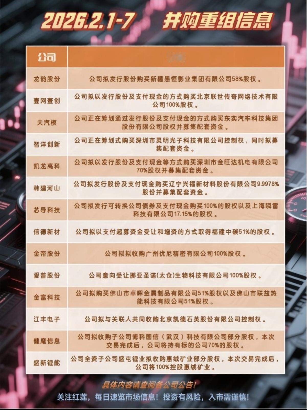 2.7周六 本周16家公司并购重组! 并购重组事项是管理层推崇备至的战略规划,并购重组往往孕育着一定的投资机会,谨慎选择!
