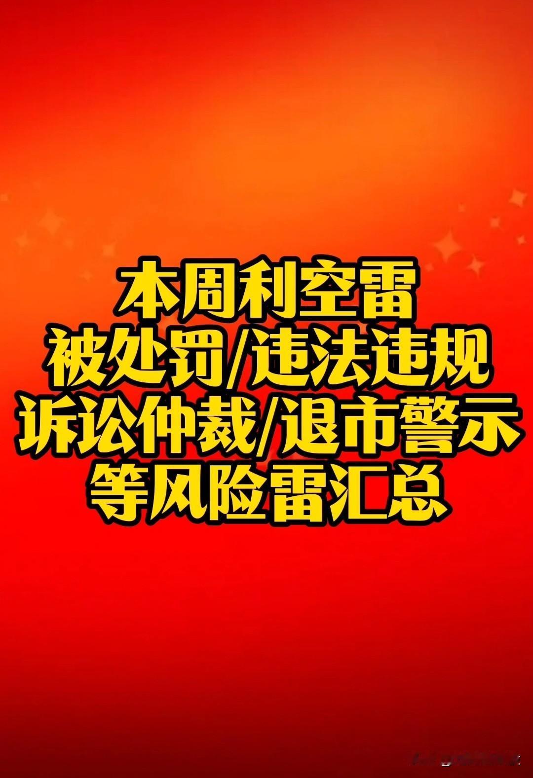 天雷滚滚!本周违规事件频发,被处罚、违法违规、诉讼仲裁、退市等风险汇总,建议收藏,避免踩雷! 关注“刘姥姥”,精彩分享真不少(麻烦亲们:点赞,收藏,分享)。 特别提醒:本文涉及内容及个股,仅供交流与参考,不是荐股,不得以此作为买卖依据,盈亏自负。违规股票 公司退市风险 股票违规操作 公司违规曝光 证券期货违法
