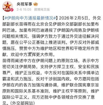 美伊谈判最新进展,中方也发声,战争一时半会或许不会到来,但是和平依旧任重道远。 近期伊朗外交副部长去中国跟我们说了谈判的情况,就是美国现在想要谈一些核武器之外的问题,而伊朗没有答应。 而我们也表示支持伊朗的立场,也希望双方能在谈判桌上解决问题,伊朗也希望中国可以发挥更大的作用。 其实美国不敢动手的原因就在这里,因为我们跟俄罗斯都表示支持伊朗反对外部施压,而美国也不可能忽略我们,所以只能跟伊朗好好谈谈。 不过现在看来这个谈判很难进行下去,因为双方不是因为具体的问题在争论,而是为了该争论什么问题而争论,难度从一开始就陡然升高,至于以后的局势怎么发展,就要看双方回去后怎么商量的了。 不知道大家有什么看法,评论区聊聊。