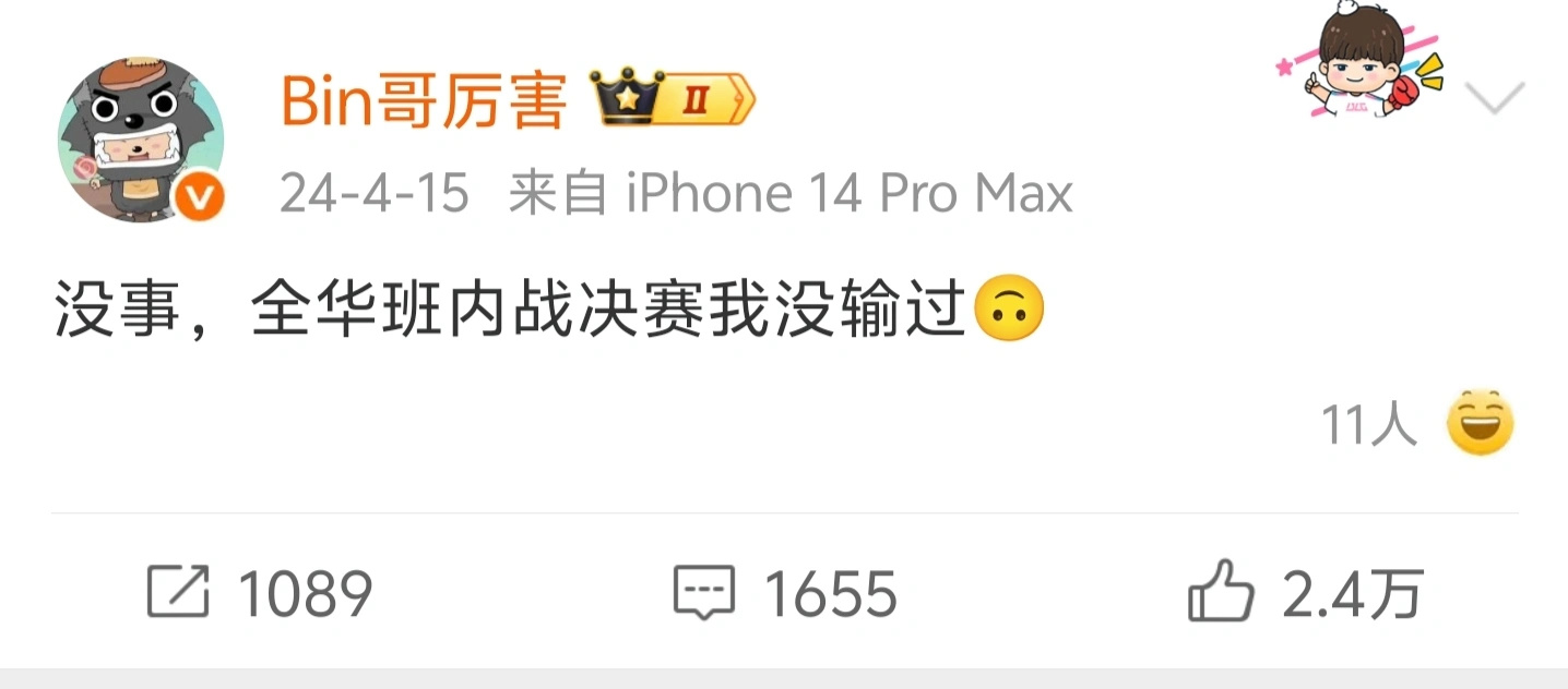 盘点Bin言Bin语,从夯到拉你们来评价图一:22夏季赛被淘汰后,也是微博王的开