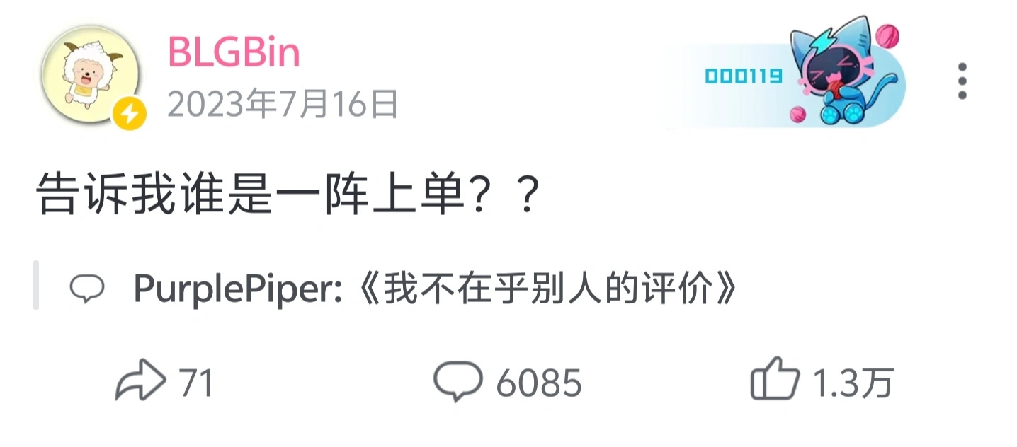 图一:22夏季赛被淘汰后,也是微博王的开始图二:23msi决赛败给jdg之后图三:23年夏季赛一次小组赛之后图四:23年夏季赛被jdg零封后图五:24年春季赛决赛前图六:24年春季赛blg夺冠后图七:24s赛决赛输给t1后图八:25常规赛beichuan换wei第一场比赛后图九:25夏季赛季后赛战胜tes后图十:昨晚结束的电竞春晚后