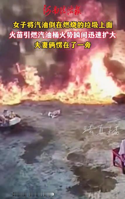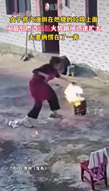 无知真的会要命的,太惊险了!据媒体2月4日报道,贵州有个女子,嫌院子里的垃圾清理起来麻烦,就想烧了省事,竟然直接往正在烧的垃圾堆上倒汽油,结果差点出大事。 火苗一下子就引燃了她手里的汽油桶,火涨得特别快,整个院子转眼就成了火海,她和她丈夫都吓傻了,站在原地一动不敢动。 万幸的是,邻居们赶紧过来帮忙救火,最后把火扑灭了,没人受伤,但那场面,想想都后怕。 有人可能会说,这女的是不是傻?其实她不是傻,就是无知,根本不知道汽油有多危险,也不知道往火上倒汽油会闯多大祸。 很多人平时就知道汽油能烧、能给车加油,压根不清楚它有多“厉害”,稍微不注意,就会出无法挽回的事,这起新闻就是最真实的教训。 大家一定要放在心上,尤其是中老年人,平时在家可能会碰到汽油、酒精,更得好好看。 可能有人不明白,为啥往火上倒汽油,火会一下子变这么大?我用大白话跟大家说,不搞那些听不懂的词。 汽油不是咱们平时烧的柴火、煤炭,它特别容易着火。首先,汽油一打开盖子,就会变成气体,飘在空气里,咱们看不见,但闻着刺鼻,只要碰到一点明火,就会立马烧起来,甚至爆炸。 其次,汽油流得特别快,倒在地上就往四周跑,火就跟着汽油烧,根本来不及拦。 另外,汽油烧的时候,会冒出有毒的烟,吸多了会头晕、喘不上气,严重的还会窒息,很多人在火灾里,不是被烧死的,是被烟呛死的。 这起事件还算幸运,没人受伤,但不是每次都这么好运。而且这个女的这么做,已经违法了。 根据消防法,故意烧垃圾引发火灾,就算没造成大损失,也可能被拘留、罚款,要是烧得严重,还得负刑事责任。 最后跟大家说句实在的,千万别心存侥幸,别用汽油、酒精烧垃圾、杂草,家里有汽油、酒精,要放在阴凉通风的地方,盖紧盖子,远离明火和孩子。 要是不小心着火了,别用水浇,用沙子、土或者灭火器盖在火上,火控不住就赶紧跑,打119报警。记住,安全第一,一时图方便,可能就会后悔一辈子,无知真的会要命!