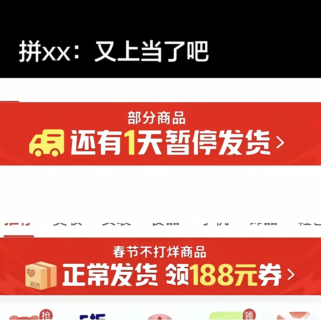 下单前:快递停运,下单后春节不打烊pdd:又上当了吧