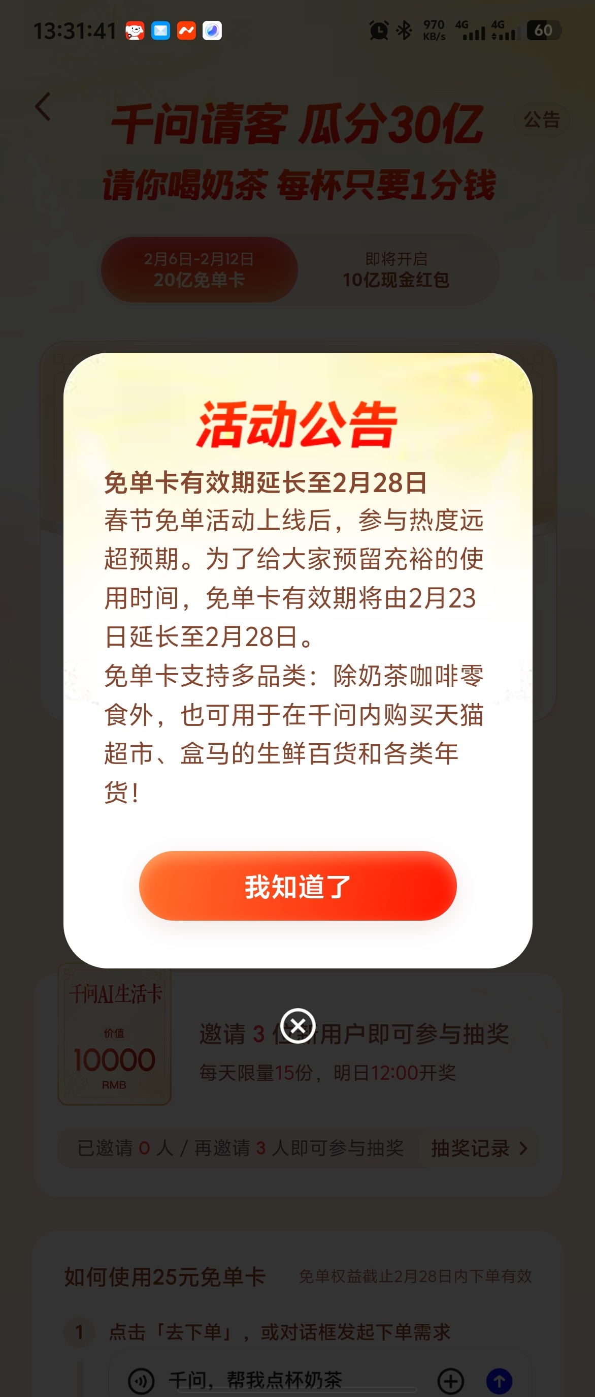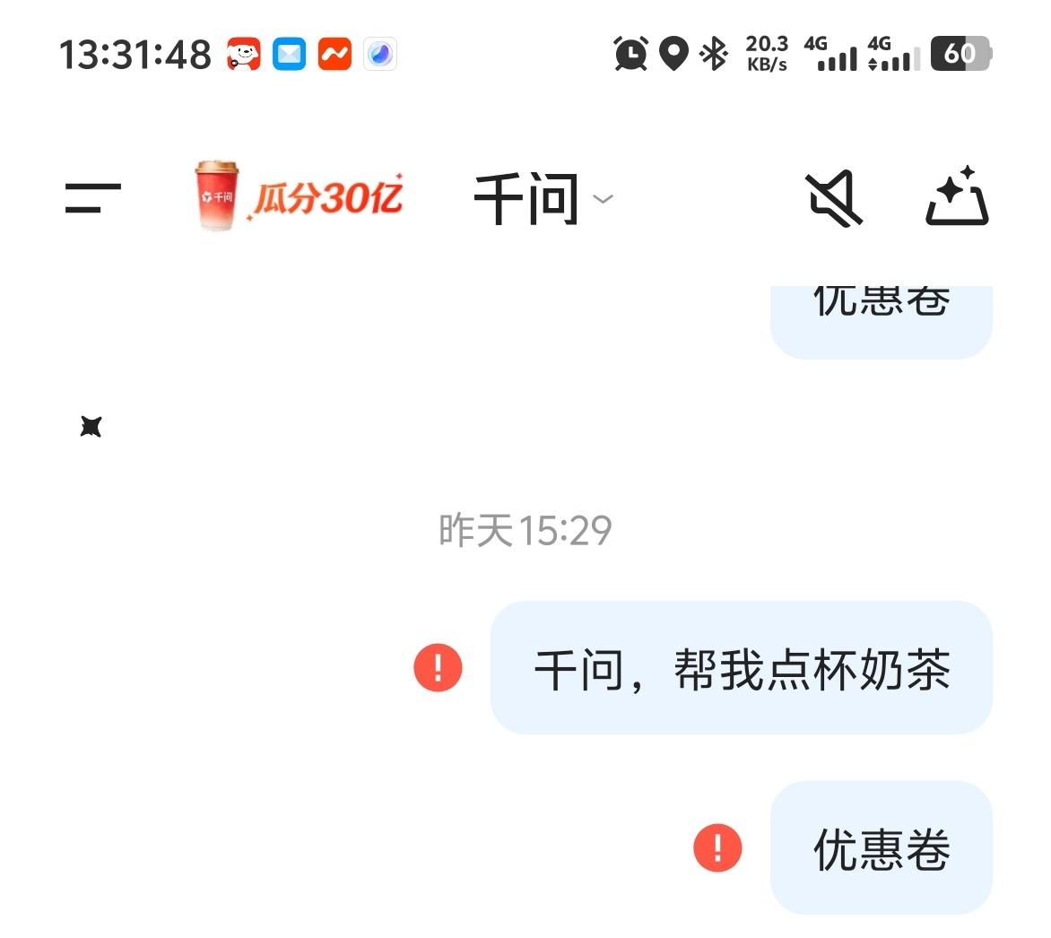 千问昨天我下单的时候就卡了,直接红叹号,不过我本身也不爱喝奶茶(不如雪碧),就无