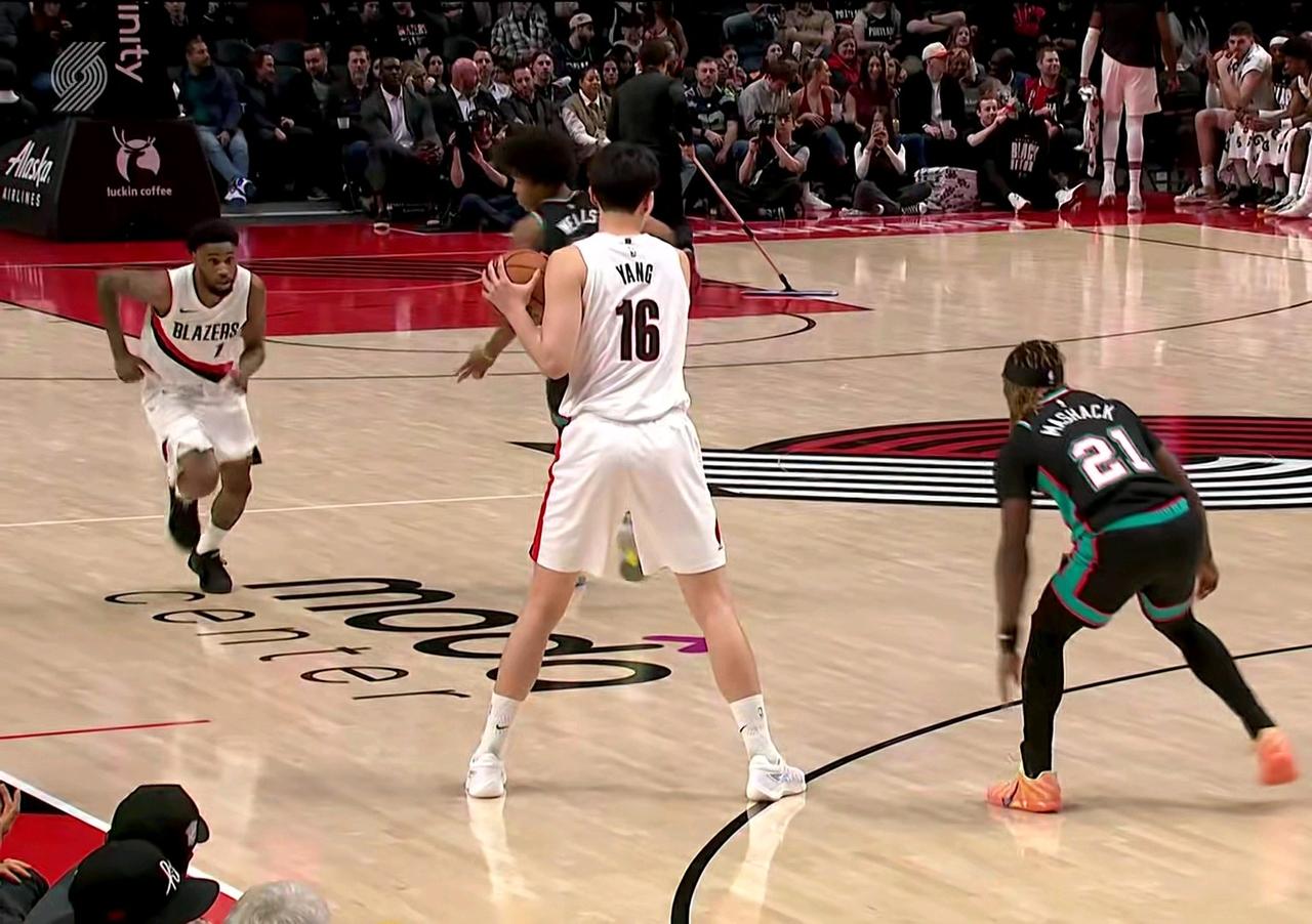 杨瀚森:花活都玩起来了!!! 在开拓者打爆灰熊的末节比赛中发生极其疯狂一幕:斯普利特非常谨慎,领先30分,比赛剩3分钟左右终于派杨瀚森上场了,在短短三分钟的时间里,杨瀚森2分1篮板2失误,投篮1/2,正负值-10全队最低!唯一的惊喜就是杨瀚森和韦斯利2过2配合,杨瀚森跨下秒传韦斯利,杨瀚森顺下再接韦斯利传球,轻松上篮得手!不得不说,单看这一球,杨瀚森的球商还是可以的!就是没机会表现啊,不足之处就是失误控制不好,韦斯利传了他3次,就把握住了一次机会,太可惜了,并且自己的传球也太随意,导致失误!说实话:不管多少时间,控制失误真的很重要,毕竟斯普利特对杨瀚森的容错率非常苛刻!少犯错,积极拼抢努力创造机会! 杨瀚森 杨瀚林NBA
