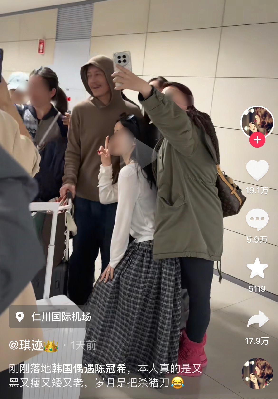 张天爱跟素人合影,胯真的好宽,大宅院似的