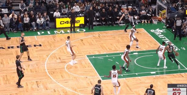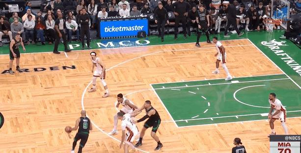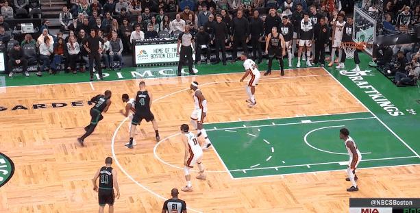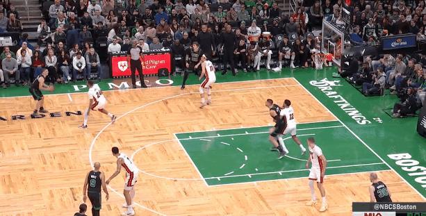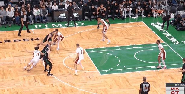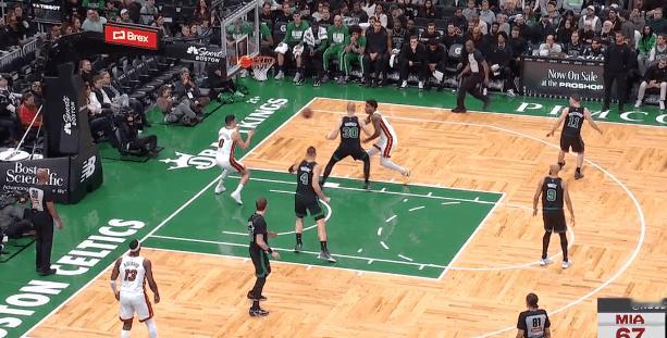 第三节49比66时,武切维奇替下凯塔,凯尔特人一口气追到73比72。先武切维奇在禁区要位,逼热收缩,于是普里查德连续撤步远射。再武切维奇到三分线拉空,于是怀特和普里查德轮流借武切维奇的拉空突破。——这是武切维奇的无球价值。