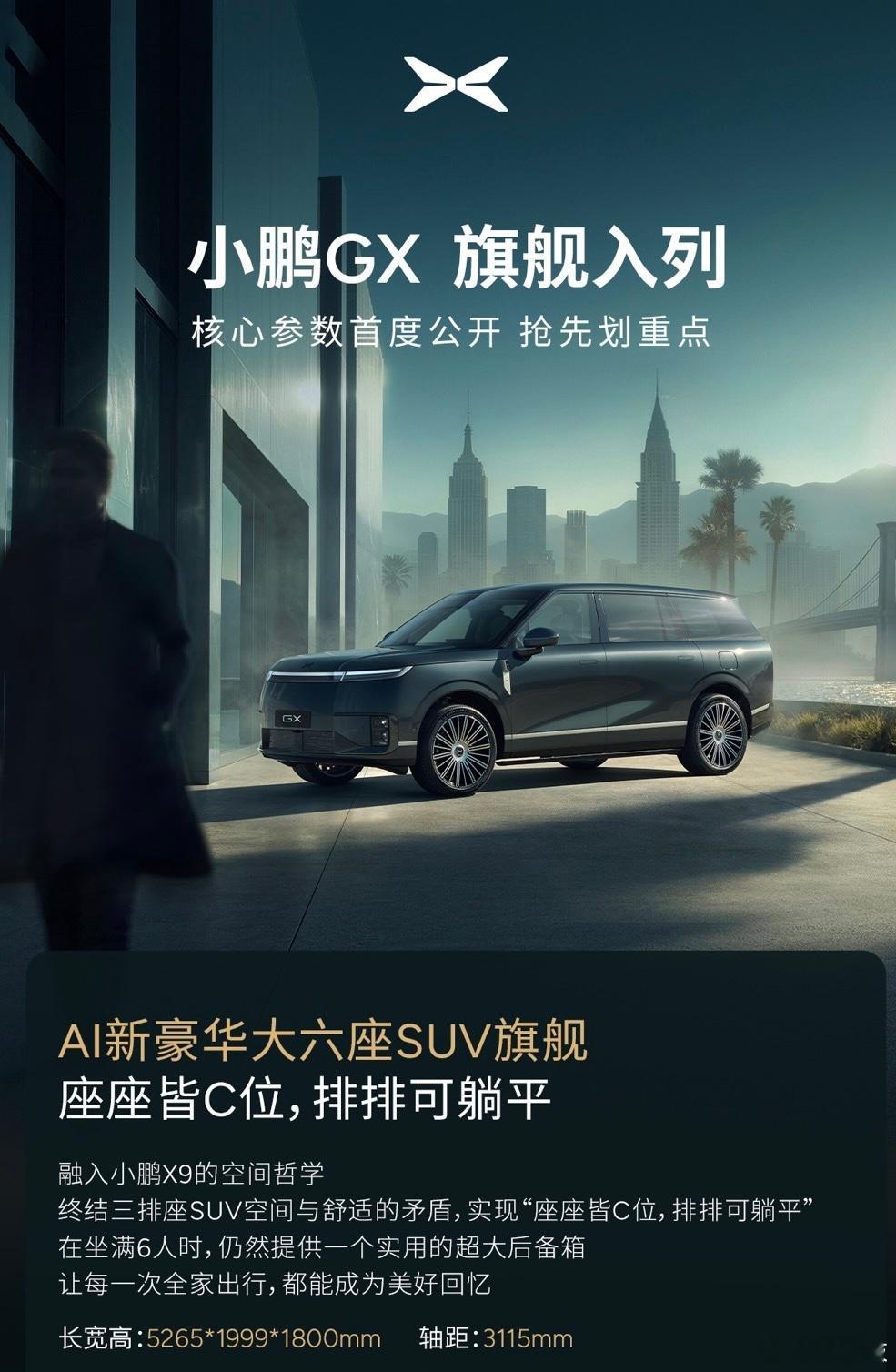 “大湾区揽胜”!小鹏GX申报图来了:纯电+增程动力/预计4-5月上市小鹏GX 日前,我们从工信部看到了小鹏GX申报图,新车定位AI新豪华大六座旗舰SUV,此次申报了纯电版和增程版,增程版纯电续航320km,新车预计4-5月上市。增程版和纯电版的设计基本保持一致,新车采用了稳重的配色,尤其是深灰色,还搭配了金色的装饰,更显高级感。整车采用长轴距、长后悬、悬浮式车顶的设计,被网友戏称“大湾区揽胜”。动力方面,增程车型搭载1.5T增程系统,发动机最大功率110千瓦,前后双驱动电机,最大功率分别为160千瓦和210千瓦,最高车速200km/h,纯电续航320km。纯电车型同样搭载双电机,前后电机最大功率分别为160千瓦和270千瓦,最高车速200km/h。结合多方信息来看,小鹏GX基于SEPA 3.0平台打造,支持800V架构,同时搭载的也是小鹏品牌最前沿的技术体系,比如线控转向+后轮转向。过去几年,小鹏在智驾领域积累了足够的口碑,但受限于纯电形式和产品尺寸,始终难以切入家庭用户的核心腹地。小鹏GX的出现,说明小鹏调整了策略,他们开始在空间定义和能源形式上,向更广泛的市场需求靠拢,这款车将会是小鹏2026年在高端市场最重要的销量来源,我们也将拭目以待!