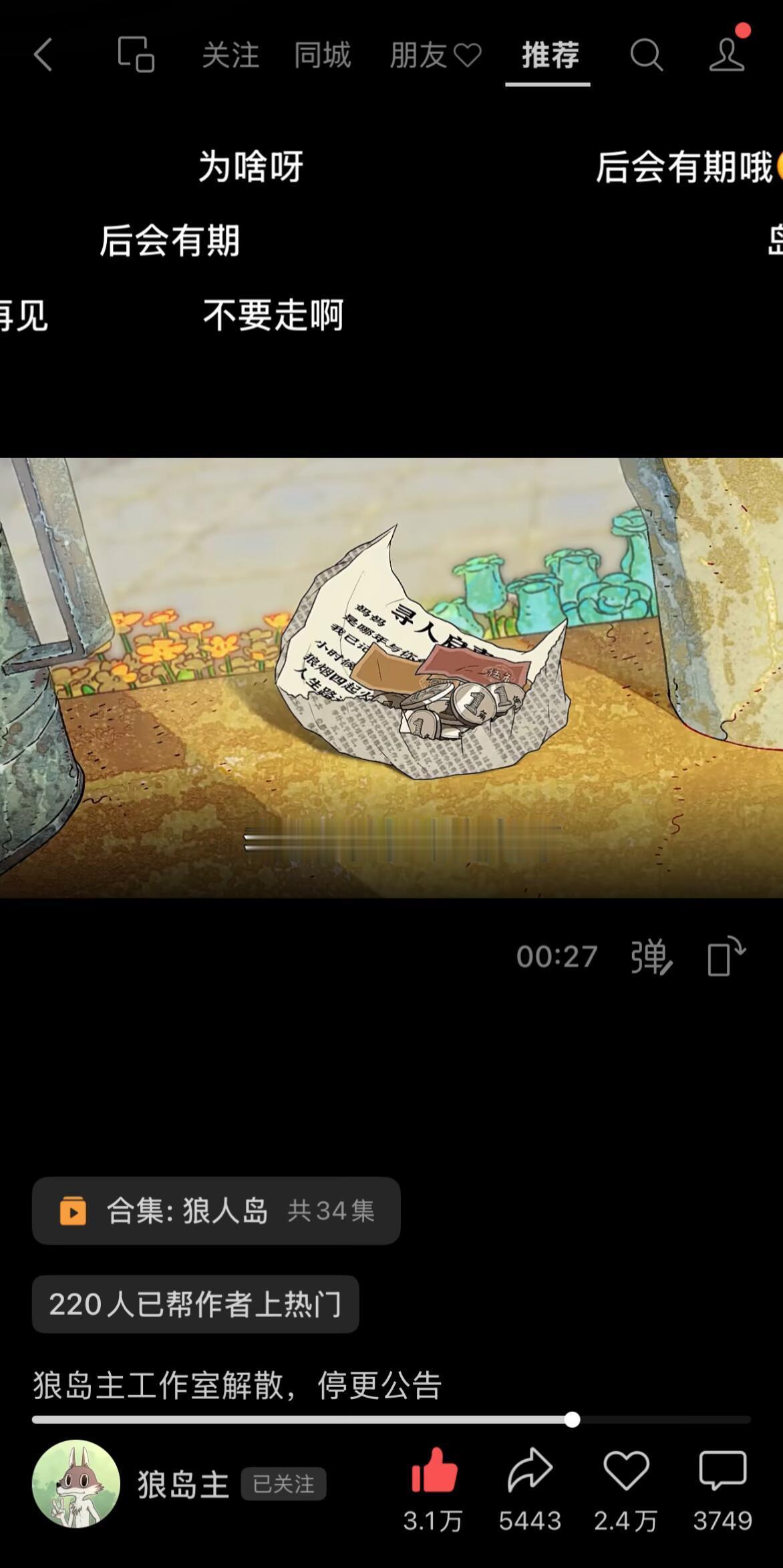 良心原创动画狼岛主再见🥹狼岛主sph等多平台,宣布工作室解散,停更。