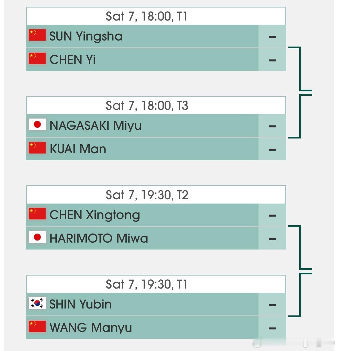海口亚洲杯 女单1/4决赛对阵时间表