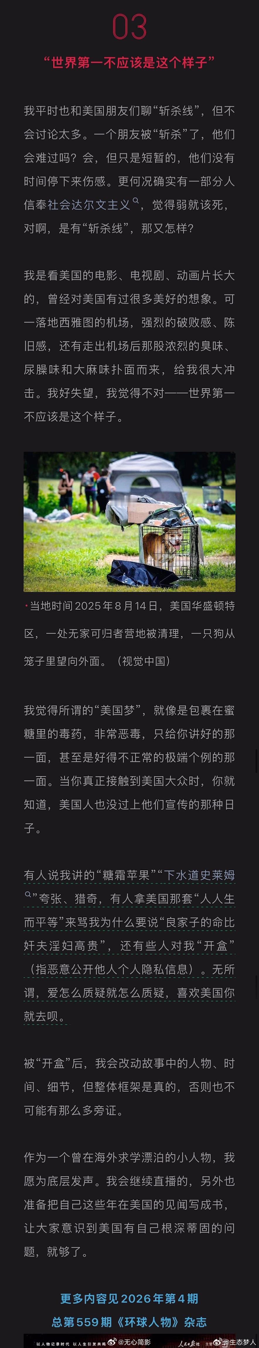 美国斩杀线的另一个名字叫资本主义《环球人物》专访“牢A”:每个美国人身后都有一