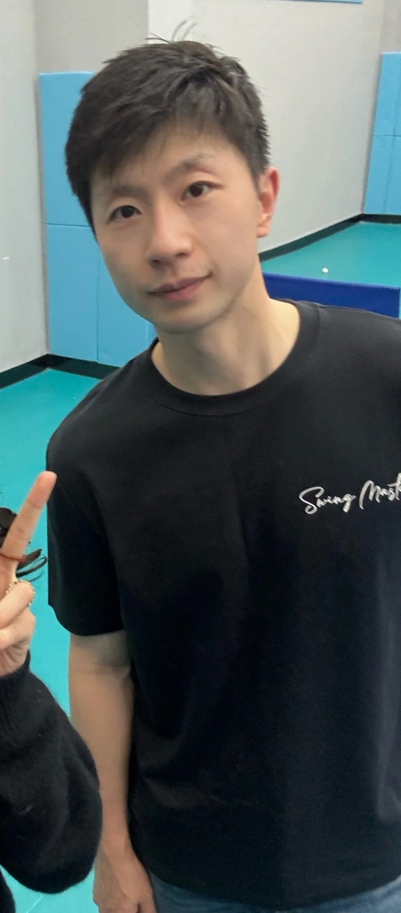 金冠又发了一张合照是小小朋友组的,所以是教练抱到中间准备让宝宝跟马龙一块,马龙让