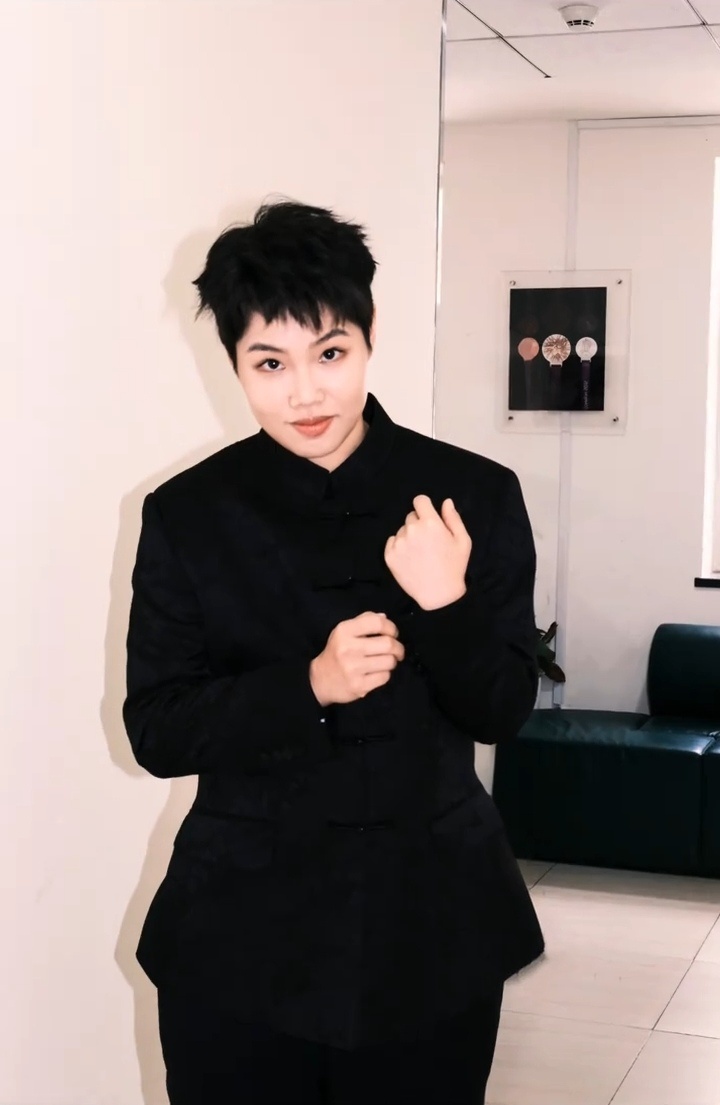 一身经典的职业套装干净利落,白衬衫配黑马甲简约又精神,认真拍照的样子超有范儿。