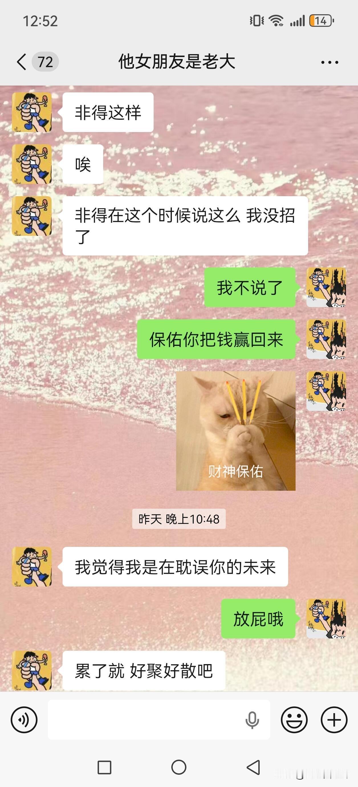 在线求助 我跟男朋友吵架了 他就说好聚好散 不耽搁我的未来 在这之前我去他的城市找工作 跟他在一起 从去的那天就经常因为一两句话 一点小事情跟他吵架 那个时候他都会哄我跟我说 然后没找到合适的工作我就先回来过年了 这两天就一直在跟他吵 前天也吵了晚上和好了 然后我今天又找他吵 然后他的工作性质是早出晚归(租车公司上班) 然后我说买票去找他 他就让我把票退了 等他发完车跟我聊 没想到还是个那我说就这样吧 没必要 说我跟他在一起不开心啥的 然后他客户打电话给他了 我就说那你先忙 拜拜 我到底应该怎么办 还有可能吗 我真的挺喜欢跟他在一起的 他是狮子座