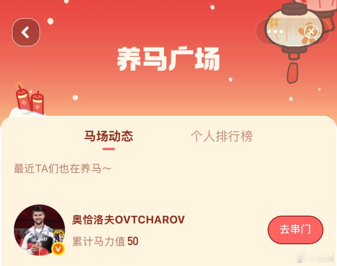 奥恰洛夫 欢迎放马过来谁还没开始在微博养马?春晚大赏养马的风已经吹到国外了!德国乒乓球运动员今日发博官宣春晚大赏“福气加马官”,还喊话网友们“放马过来”,也是狠狠感受了一把春节氛围!其他国乒运动员们加入马场还会遥远吗!期待这个春晚大赏带来更多惊喜!