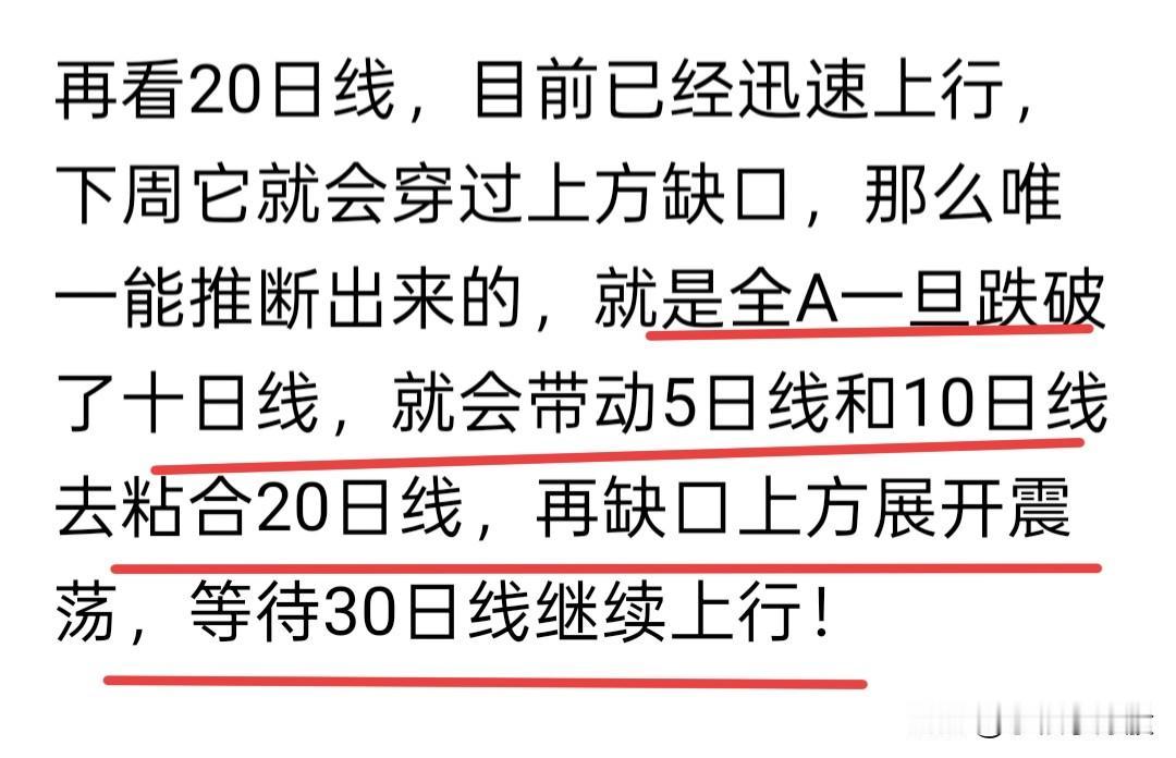 下周有一天会出现普涨,但是我认为并不会出现在下周一,大A的脾气大家都懂,外围大涨也只会影响它的开盘,那么继续用均线去推断它下周的大概走势! 目前单单从全A的日线图来看,均线已经符合我置顶的那篇文章了,在2016点这个缺口这里已经整理了6 天,30日线也已经跟上来了,但是此时5日线和10日线只是下穿了20日线,并没有出现黏合的形态! 像这种图二,均线该怎么去运行才形成到起涨的形态呢? 如果知道均线缠绕的玩法,那么此时全A需要在30日线上方运行,然后等5日线去上穿20日线!一般这种会有两种走势能达到目的 一、拉升,连续上涨2-3天,让5日线的角度上行,这样5和10和20就缠绕了,但是年前效应明显,资金畏首畏尾,这种走法有点不大现实! 二、打压震荡,就是全A围绕这个箱体(2016点-2062点)运行三天,这时候10日线正好可以下行,穿过20日线,回到5日线和20日线的中心点,然后再来一个中阳线,正好5日线可以上穿10日线! 那么这个中阳线大概就在周三或者周四形成!也就是说,下周再周三或者周四,会有一个普涨!