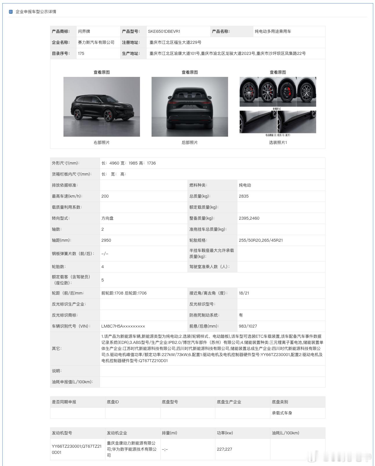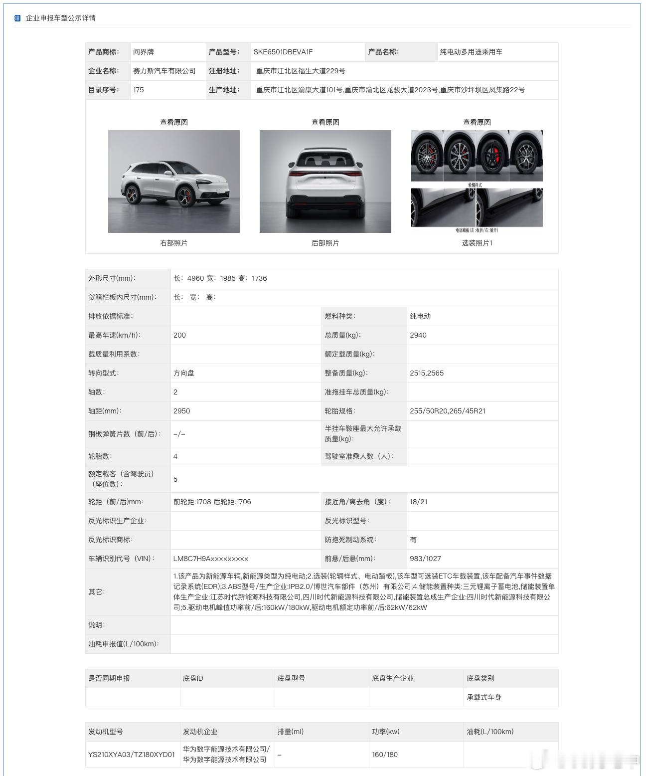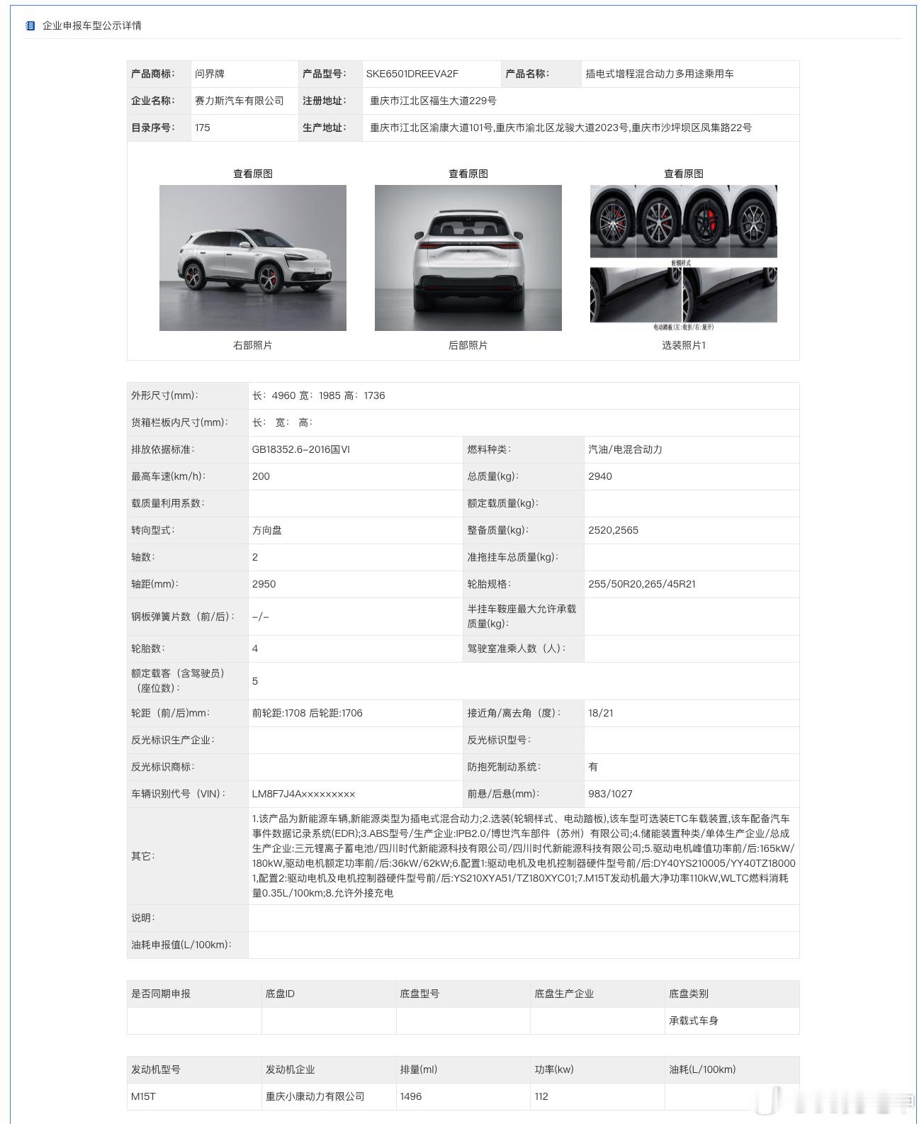 记录一下工信部公告新车——问界M6-长宽高4,960x1,985x