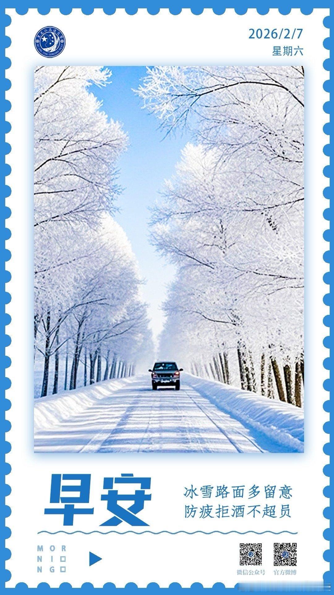 早安冰雪路面多留意,防疲拒酒不超员。早安早安高小黑(
