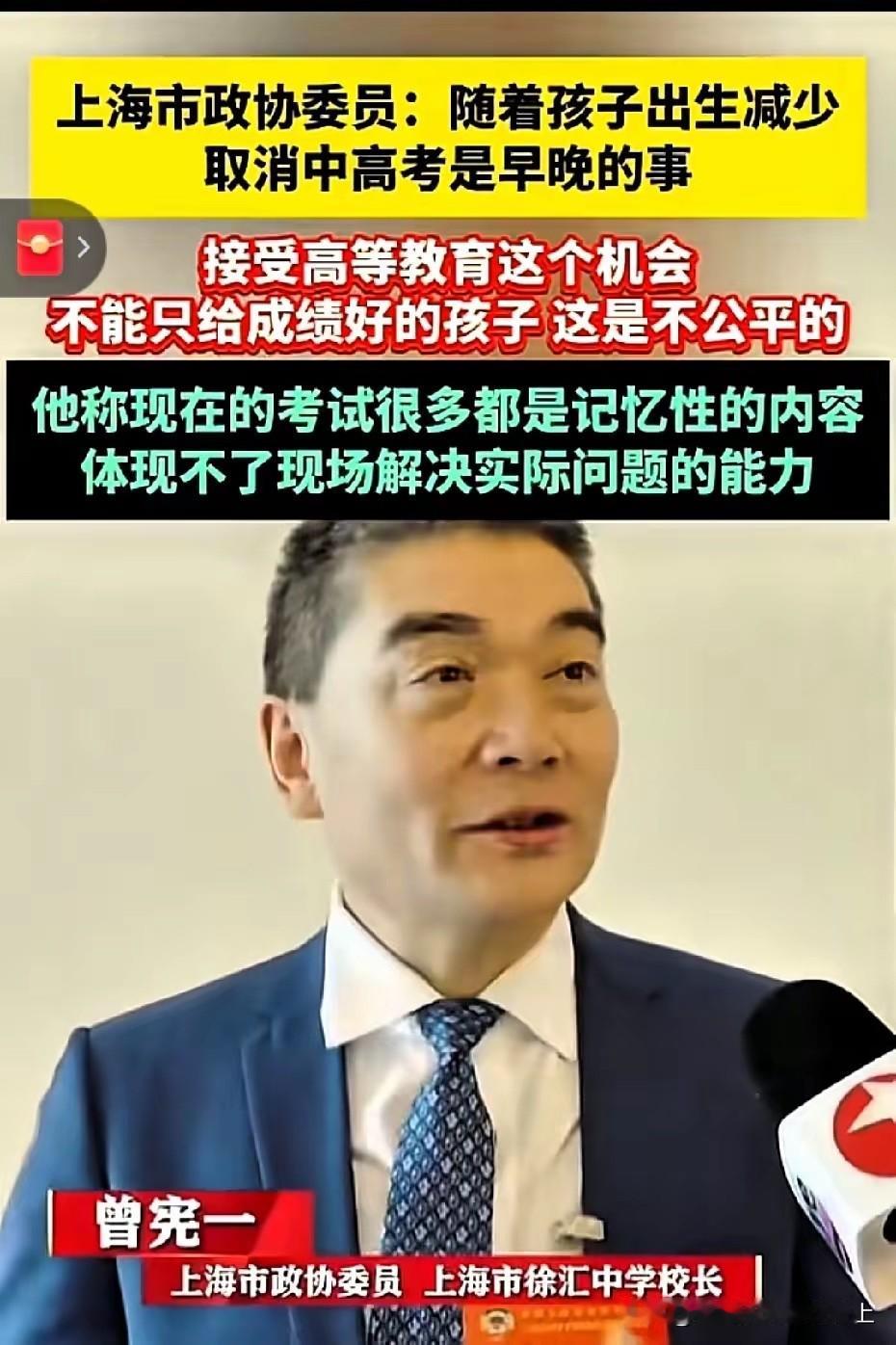 我觉得说这种话的人简直就是扯淡的,如果取消中考高考,那农村里的人要实现阶层的跨越是更无可能了,中考高考最起码还可以通过自己的努力学习,考上好的学校,实现自己的梦想,还可以改变自己的命运。 农村的孩子和城里的孩子本身人生的起跑线就完全不一样,取消中高考,那么农民的孩子永远只是农民了,多少辈子都翻不了身了,中考高考才是唯一相对最公平的优胜劣汰方式了。 这算什么狗屁专家?