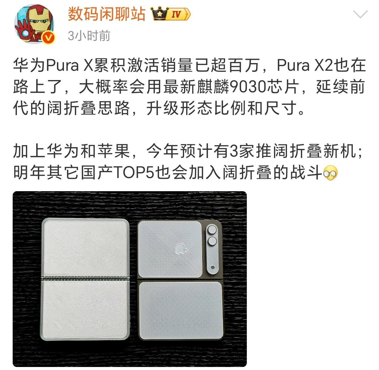 华为第二代阔折叠机型曝光华为Pura X2快了,麒麟9030芯片、更强的影像,期待!