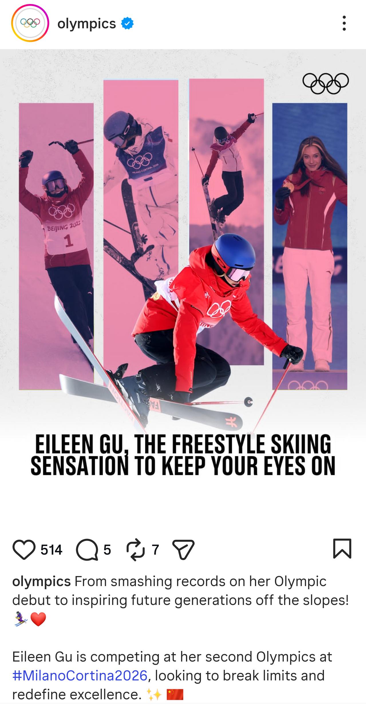 谷爱凌排面有11张海报预告,奥林匹克官方发布:From smashing records on her Olympic debut to inspiring future generations off the slopes! ⛷️❤️