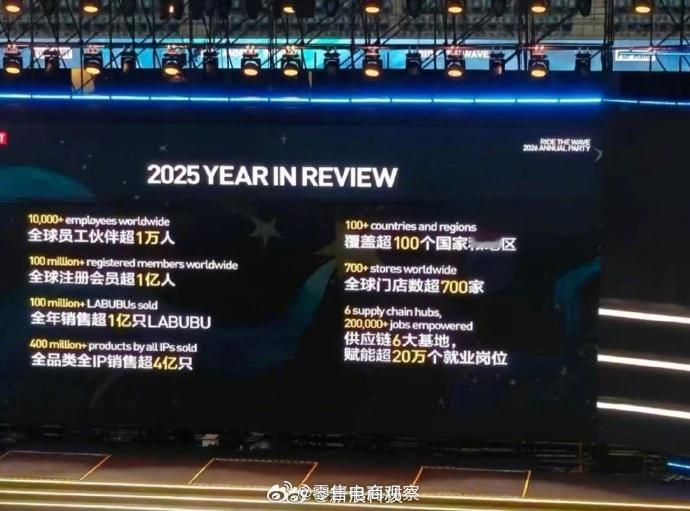 LABUBU全年销量超1亿只【泡泡玛特揭秘LABUBU销量】昨日,泡泡玛特举办2026年年会。会上,泡泡玛特透露了过去一年的年度核心数据。