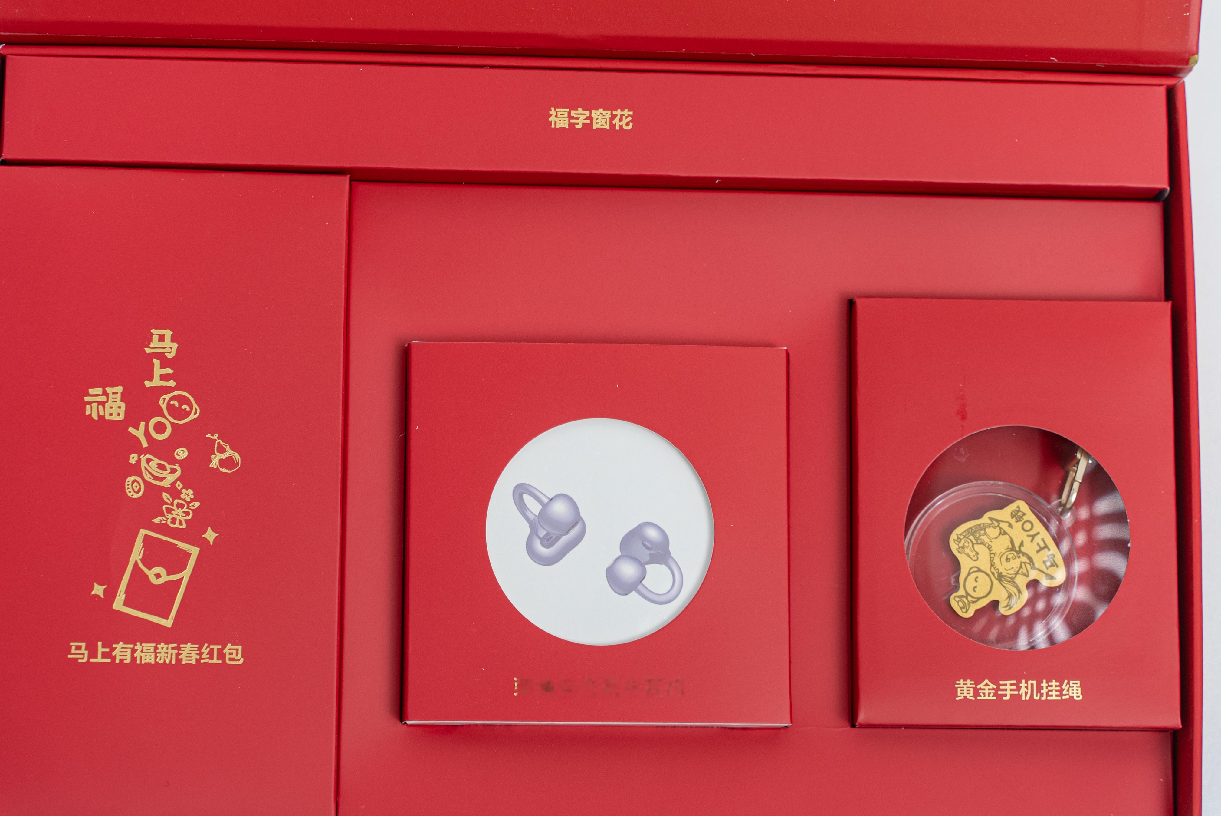 感谢荣耀的新年礼盒~开出黄金手机挂绳和荣耀亲选耳夹耳机了,这含金量无需多言还有让春节氛围拉满的窗花和红包赶紧送给已婚的同事坐等收红包啦~