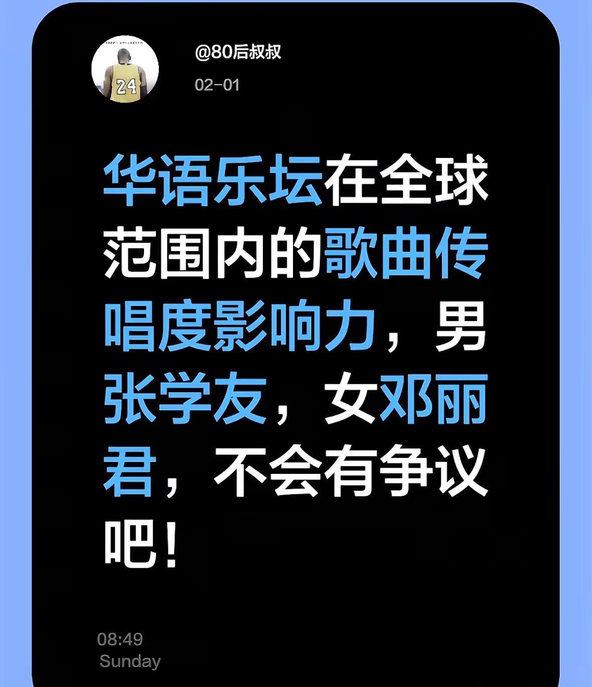 华语乐坛全球最具影响力男女歌手:张学友和邓丽君,你认为是这样吗?