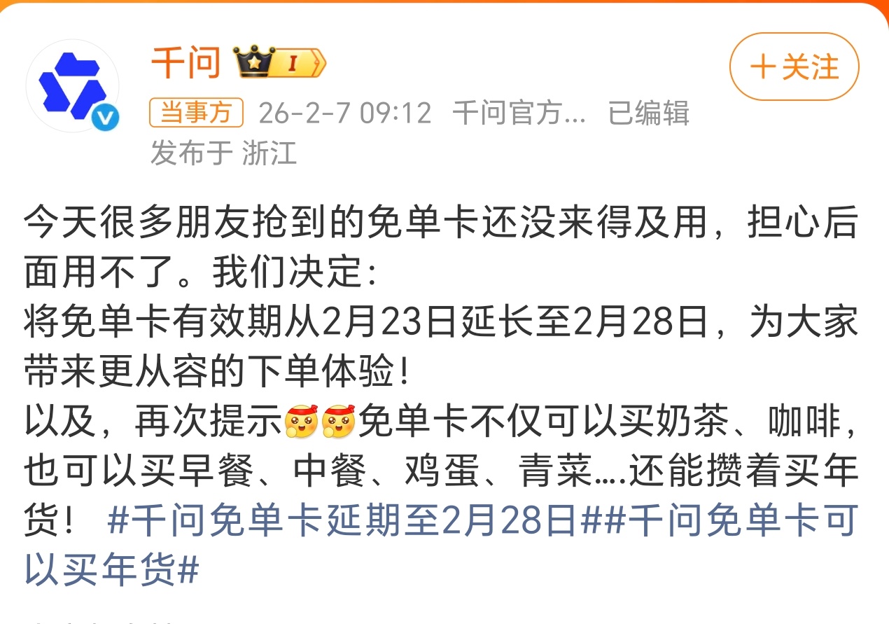 千问昨天刷屏的免费奶茶终于等来了补偿方案,没薅羊毛的铁子们赶紧上车了……