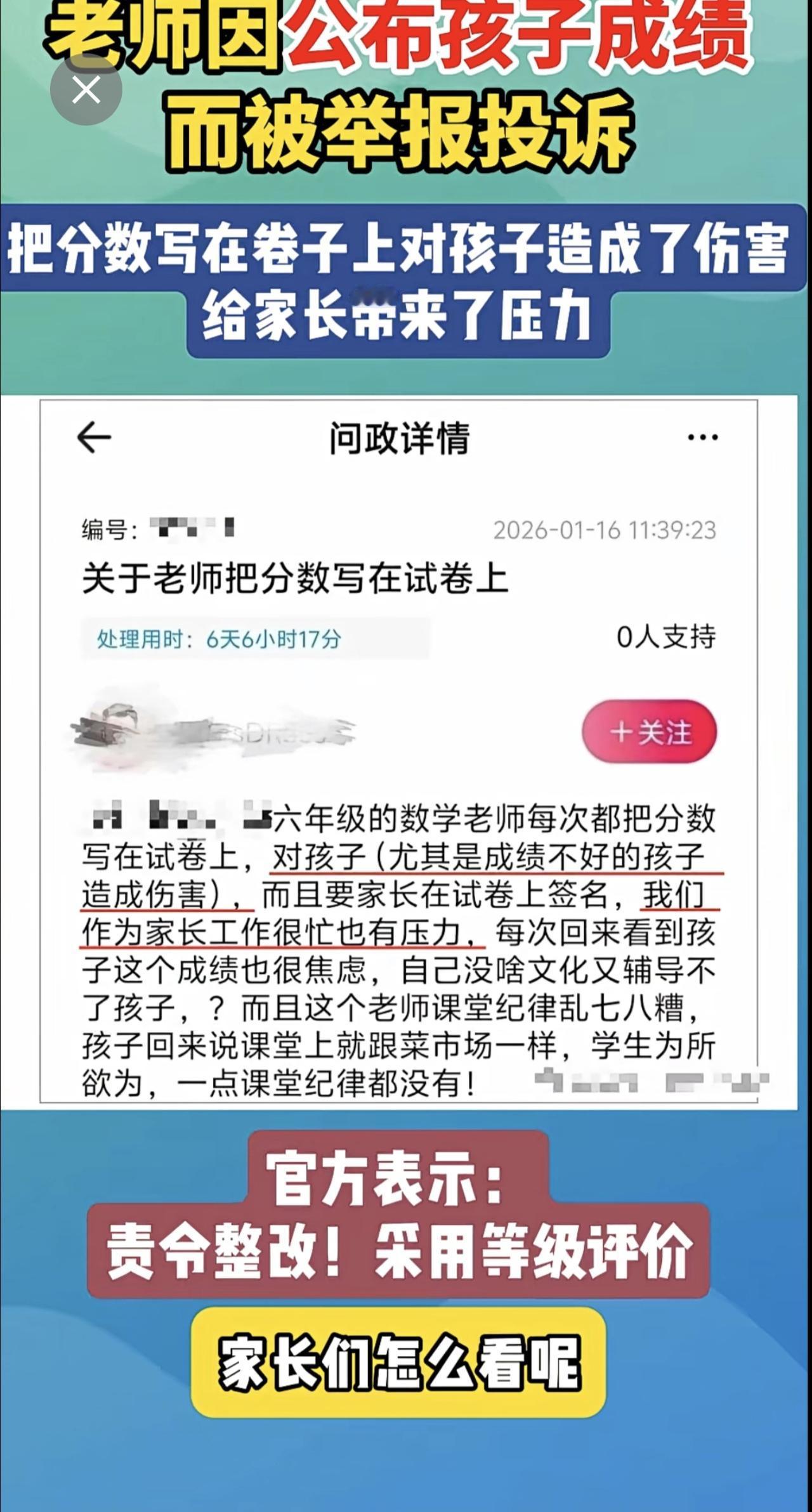 老师因公布孩子成绩而被举报投诉!?