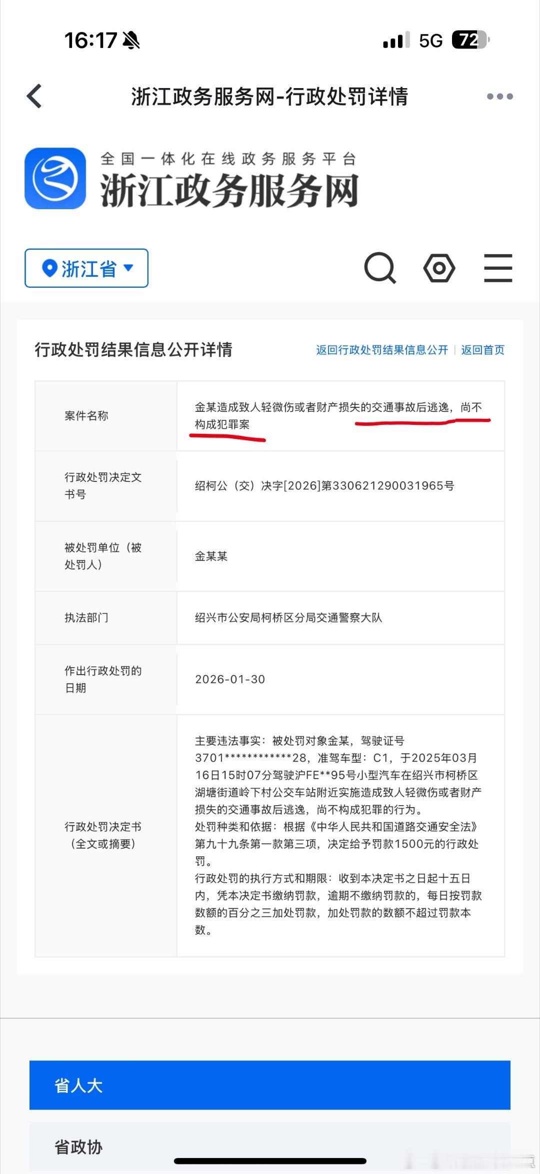 狗仔放出金晨被行政处f通知交通事故后逃逸,不构成犯罪,罚款1500元!那这算