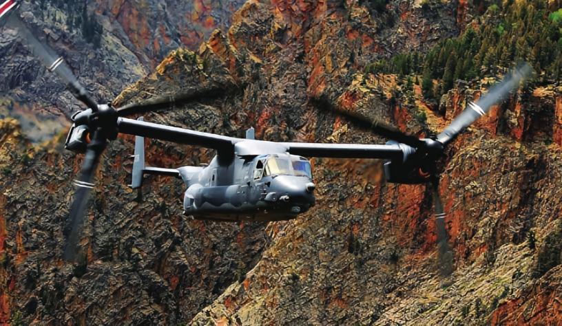 V-22“鱼鹰”(Osprey)倾转旋翼机由美国贝尔公司和波音公司联合研制,其设计是基于贝尔公司负责的XV-15试验机。2007年,V-22倾转旋翼机开始在美国海军陆战队服役,取代CH-46执行搜救及作战任务。2009年,美国空军也开始配备V-22倾转旋翼机。