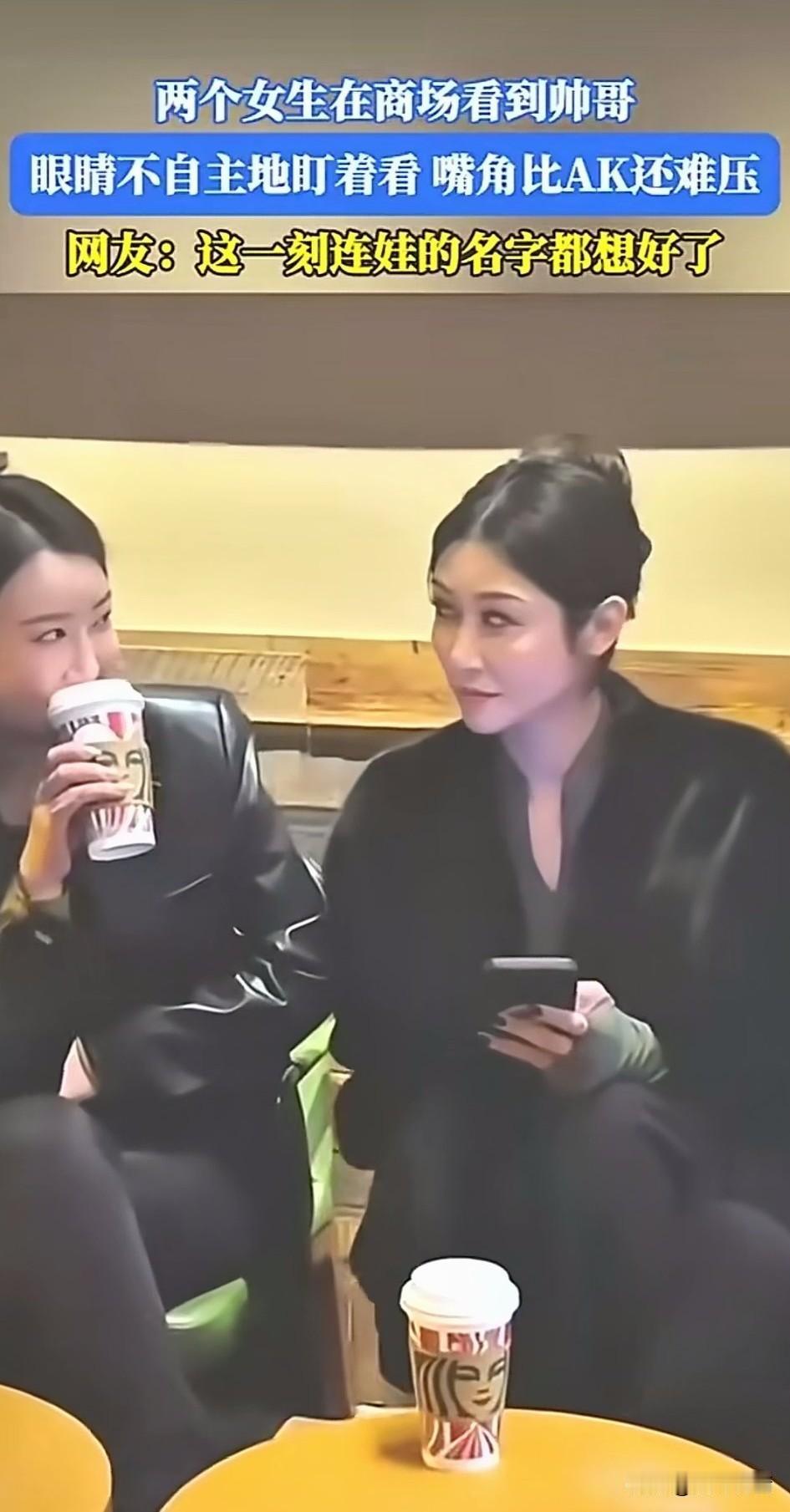 两个美女在商场歇歇,突然喝奶茶的闺蜜碰了一下她,示意让她看一下! 玩手机的女子抬头看了一眼,眼神瞬间拉丝,她们都看到了一位超级帅的帅哥,谁说女人不好色? 那是因为没有碰到帅的人,看她的表情就知道了,那男生简直帅到她的心里了,她盯着人家足足看了10秒钟! 旁边的闺蜜都笑了,最后两个人相视一笑,嘴角比ak还难压,仿佛这一年就是万年,所以说帅真的可以当饭吃! 不仅男人喜欢美女,女生更喜欢帅哥,女追男隔层纱,真是没有说错,难怪网友表示这一刻估计她连孩子的名字都想好了… 大家对于这对闺蜜看帅哥的眼神怎么看?