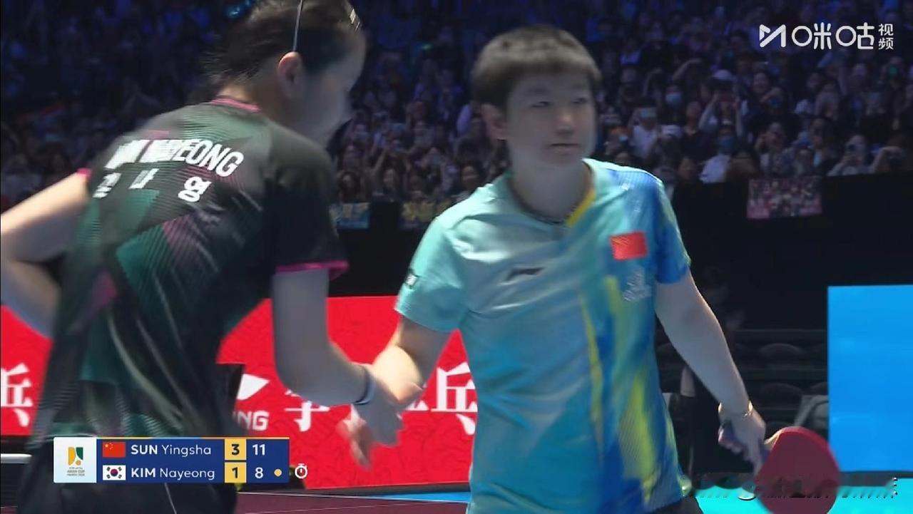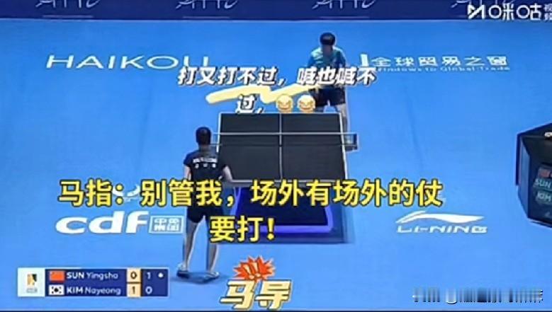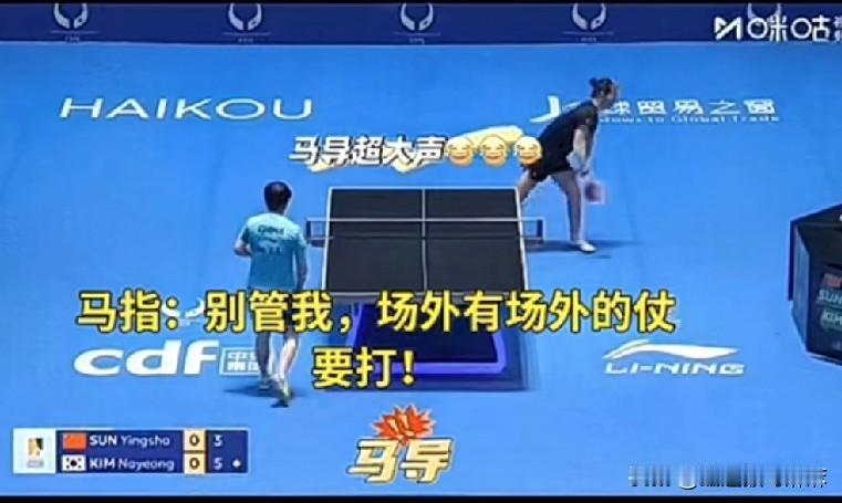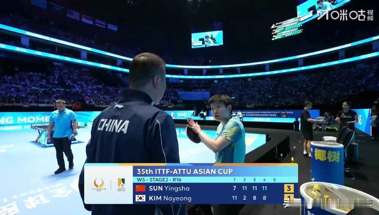 太逗了!莎莎现在打球不用自己喊,开始自带打气筒了![笑哭] 今天亚洲杯淘汰赛第一天,莎莎对阵韩国的金娜英,虽然开场金娜英先11-7拿下第一局,但是后面三局基本在莎莎的节奏里,三局比分是11-2,11-8,11-8,最后莎莎3-1拿下,晋级下一轮! 比赛过程也是很逗,莎莎和金娜英在场上比拼,场外的两个教练也没闲着,金娜英得分,她的教练就喊一声,莎莎得分,马琳也喊回去,各有各的战场![捂脸] 脑洞大开:要是莎莎和台林来一场性别大战,两个教练喊着喊着,会不会打起来!还别说,这场面估计挺多人想看吧![呲牙]