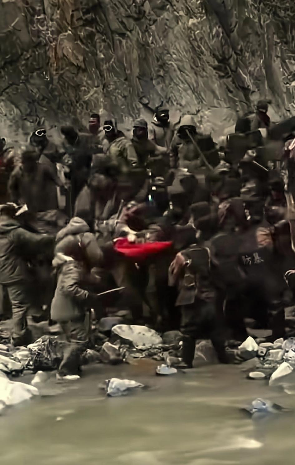 生死捍卫那一抹中国红,看着看着,眼眶已经噙满泪水。谁是最可爱的人?永远是我们的解放军战士!
