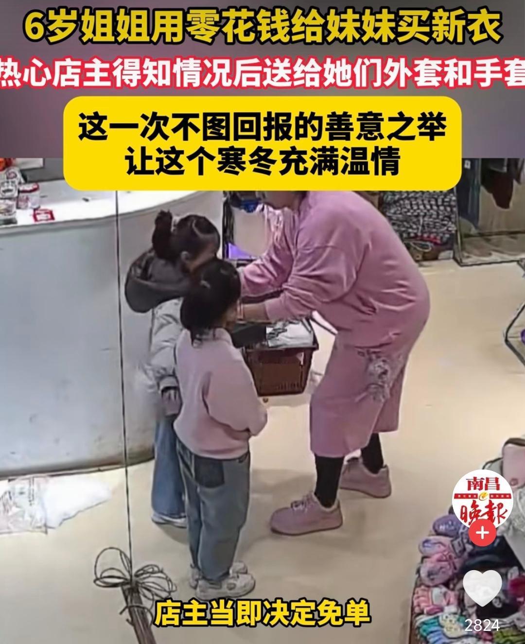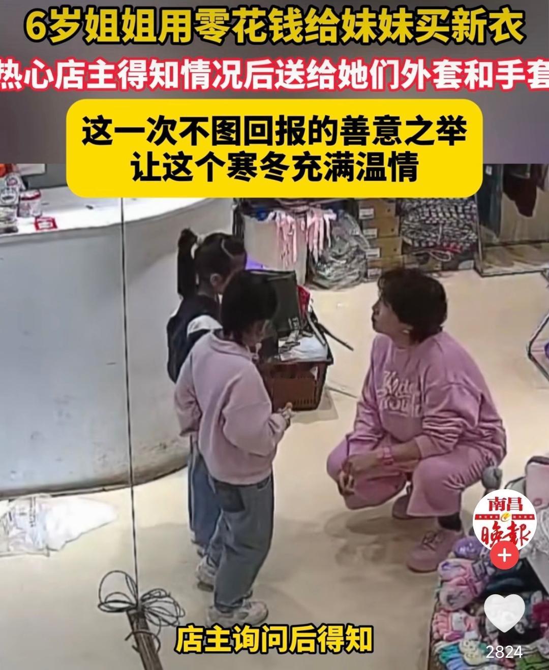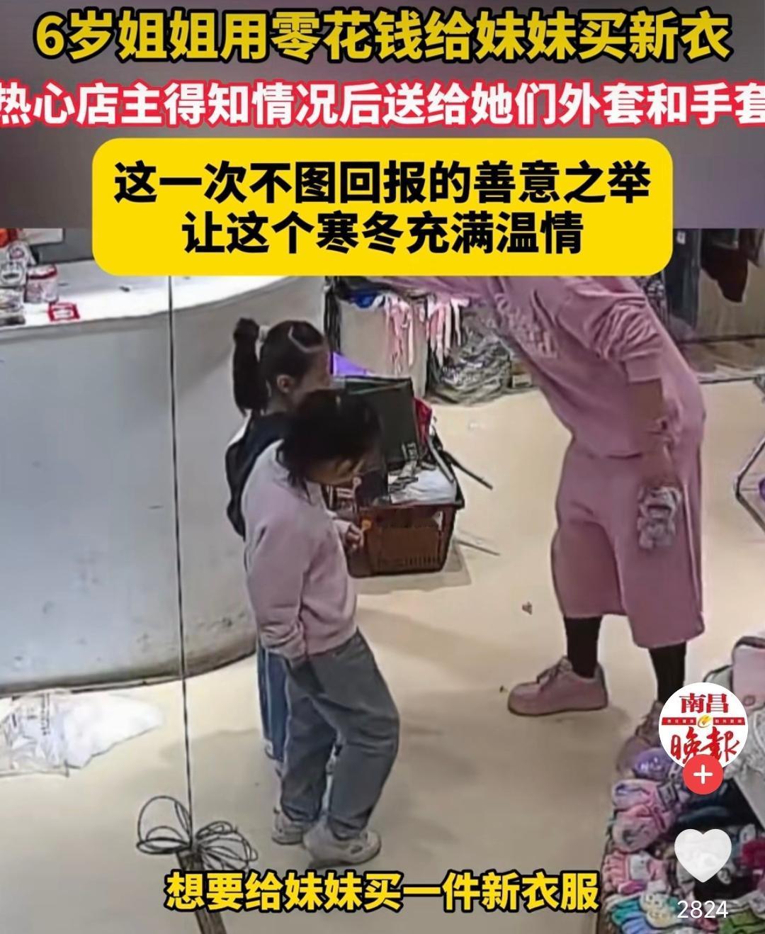 天津,一个6岁的姐姐牵着妹妹,揣着不知攒了多久的20元钱,走进一家童装店。 她进店四处张望,随后掏出20块钱仰着头,认真且有些胆怯的说:“阿姨,我想给妹妹买件新衣服。” 女店主愣住了,20块钱哪够买衣服。她满脸疑惑问了句:大人呢? 小女孩声音轻轻的,却像针一样扎心:爸爸妈妈在外地打工,今年不回来,所以我想给妹妹买件新衣服穿。一句话,戳中了店主的软肋。 她才6岁,本该被捧在手心,可在她身上却有一种远远超出年龄的懂事。她扛起“姐姐”的责任,把仅有的温柔与底气,全都给了妹妹。 小女孩没有抱怨,那时的她只有一个最朴素的心愿:过年了,妹妹要有新衣服穿! 店主得知情况后破了防,当即决定给她们免单。不止是给妹妹送了件厚实的外套,还给姐姐也安排上一件。并送了两双保暖手套。 她把20元原封不动的塞回到姐姐手里,轻声叮嘱:爸妈不在身边,你们要照顾好自己,注意保暖。 临走时,姐姐深深鞠了一躬,那一幕让人感到心疼。她还没学会照顾自己,却先学会了照顾妹妹。而店主的温柔更让人破防,她不是在施舍,而是悄悄护住了孩子的自尊。 这个世上最动人的温暖,不一定非要是惊天动地的壮举。它可以是年幼的手足相依为命,用稚嫩肩膀撑起彼此的依靠。也可以是陌生的善意不期而遇,在寒冬里托住她们的期盼。 这就是生活。有人为生活奔波缺席团圆,有人用善良补上缺席的爱。20块很轻,可姐姐的爱却是那么的重! 愿所有留守的孩子都能被温柔以待,愿每一份纯粹的善良,都能被看见、被传递。 最后我想说一句:这人间烟火,最暖的依然是人心……