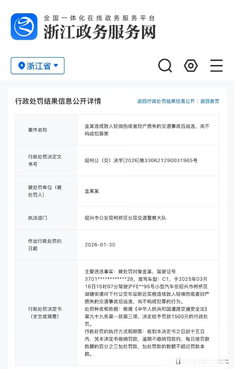 金晨被行政处罚!! 交通事故后逃逸!!罚款1500元! 顶包的助理没什么处罚后果,甚至连驾驶证都不需要记分???? 大家满意吗??????????