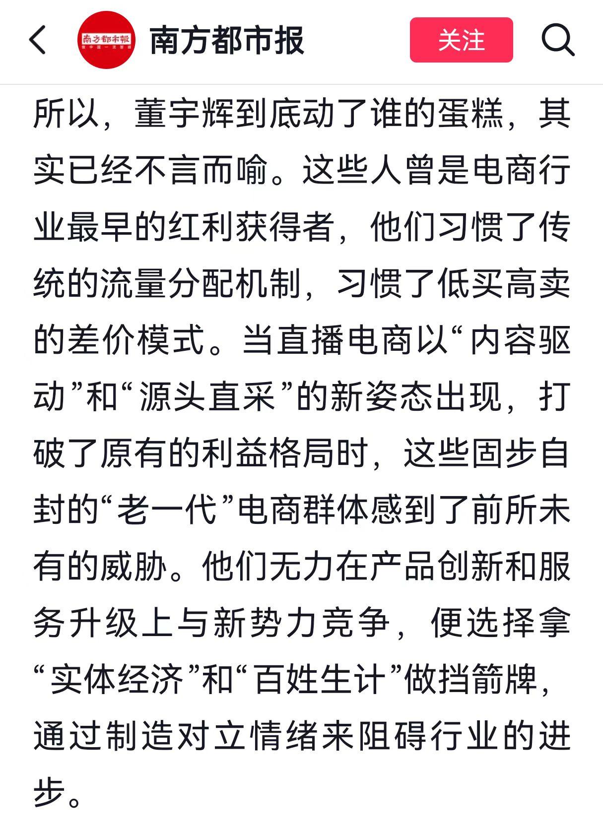 董宇辉卖春联到底是动了谁的蛋糕?这是2月6号当天南方都市报发表的一篇文章。 在这