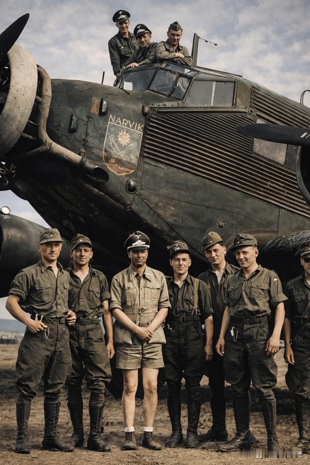一架德国空军的Ju-52运输机停在利比亚机场上,旁边是非洲军团的士兵和机组人员。这架飞机曾用于纳尔维克战役(1940年春)。照片拍摄于1941年4月。 德国运输机 历史 历史老照片 二战