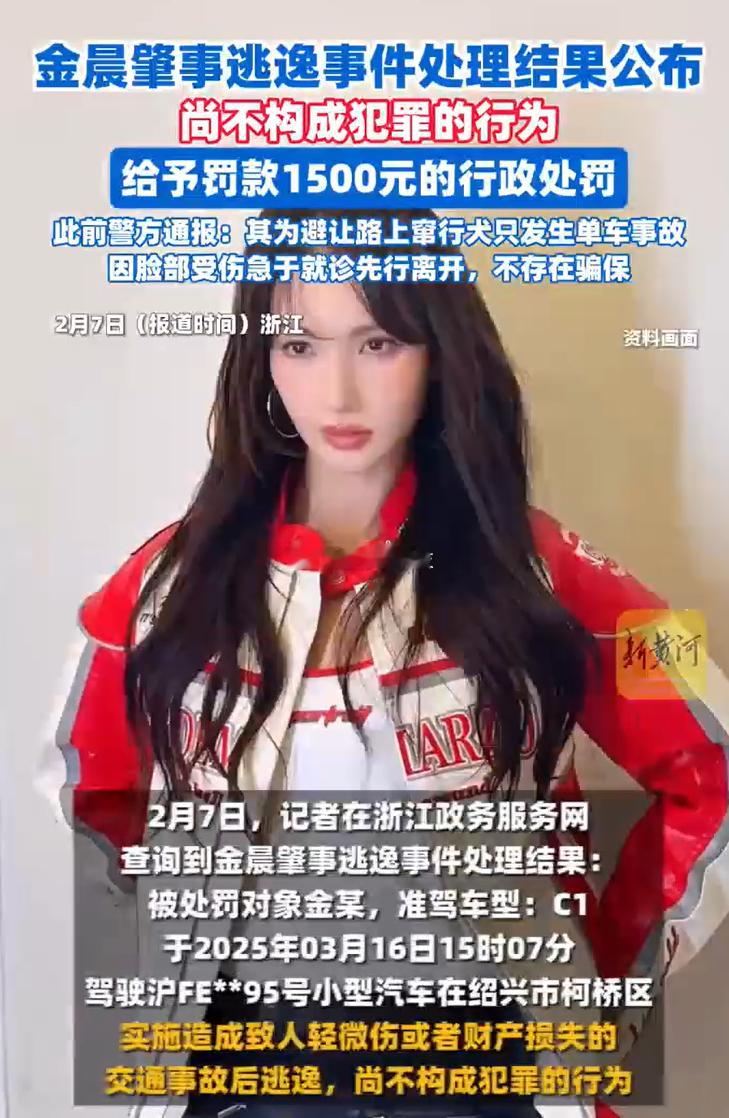 金晨肇事逃逸被罚1500元虽然不是犯罪,但已经是违法行为了吧?从这个角度看,金晨