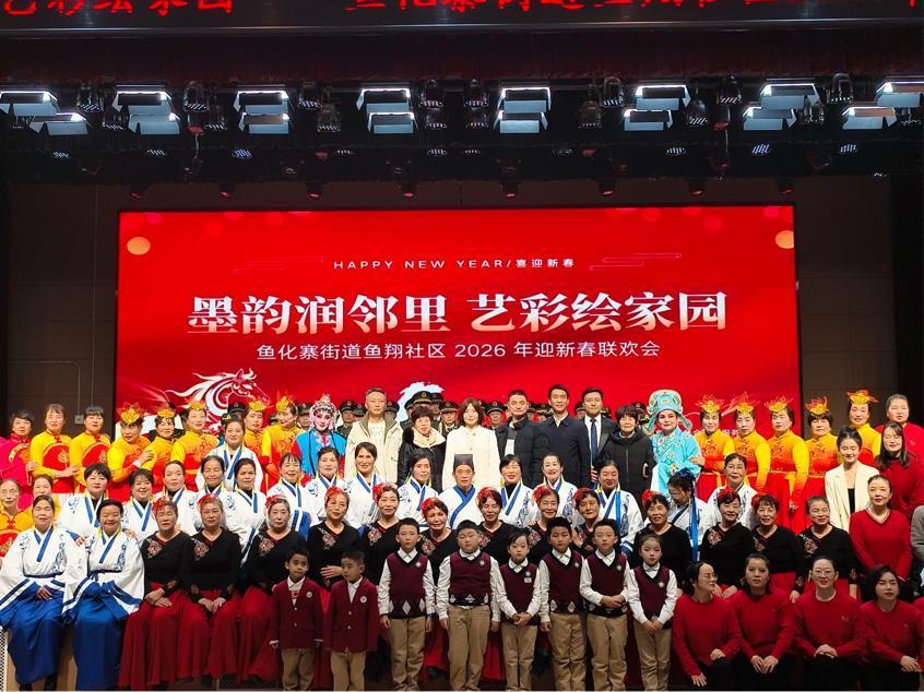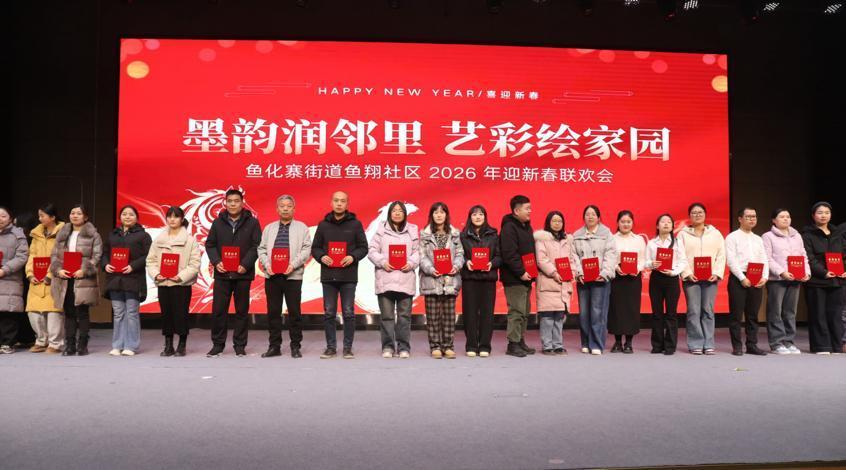 墨韵润邻里 艺彩绘家园 高新区鱼化寨街道鱼翔社区举办2026年迎新春联欢会 新春将至,万象更新。2月6日,高新区鱼化寨街道鱼翔社区2026年迎新春联欢会在高新第一学校火热上演。这里歌声、笑声、掌声此起彼伏,交织成寒冬里最温暖的年味。 联欢会在高新区第二十四幼儿园孩子们表演的舞蹈朗诵《皓月颂家国·起舞贺新春》中拉开序幕。随后,社区工作人员献上诗朗诵《七色光·家园颂》,抒发共建美好家园的心声。喜洋洋舞蹈队的《黄河水从我门前过》《到吴起镇》舞姿欢快,闫子西的男声独唱《好日子越过越兴旺》《骏马奔驰保边疆》歌声嘹亮。公安高新分局反恐怖和特警大队表演的舞蹈《热血燃情·忠诚逐光》气势恢宏,彰显了守护平安的坚定力量,将现场气氛推向高潮。 老年大学的非洲鼓《越来越好》节奏欢快,高新城市书房选送的诗朗诵《写春天》《家庭教育》温馨动人,文卓教育的独唱《月半小夜曲》婉转动听。莲之韵舞蹈队的古典走秀《送你一个长安》,优美灵动,鸿基新城自乐班的戏歌《人面桃花》婉转悠扬。此外,长安信托带来的相声《反诈宣传员》寓教于乐,高新第一学校朗诵的《我是东风,使命必达》铿锵有力,鸿基新城舞蹈队的《灯火里的中国》优美动人,西安八一艺术团合唱的《祖国不会忘记》深情激扬,赢得了现场观众的共鸣与掌声。 活动现场,为本年度在社区治理、志愿服务、文化共建等方面表现突出的社区工作者、社区干部、共建单位和热心居民代表颁发了荣誉证书,致以谢意。在激动人心的抽奖环节,台上台下互动热烈,仿佛一个大家庭在共享团圆的喜悦,欢声笑语汇聚成温暖的前行力量。 高新区鱼化寨街道鱼翔社区负责人表示:“联欢会不仅是团圆盛会,更是邻里情谊的交流平台。未来,社区将始终聚焦居民急难愁盼,持续提升服务效能,完善便民服务体系。不断丰富文化生活,打造特色社区品牌,让邻里情更浓、社区味更足。” (张楚翌 高新融媒记者 许丹)