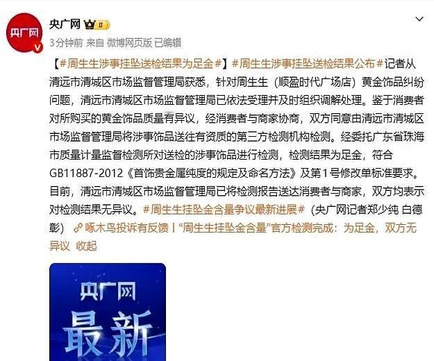 周生生的金店里,一个大哥把刚买的足金挂坠往柜台上一放,斩钉截铁地说:“这里面有铁、有银,还有钯!” 柜姐脸上的标准微笑,立马就僵住了。周围看金饰的人,也都齐刷刷地转过头来。 空气里安静得只剩下柜台顶上射灯的嗡嗡声。 大哥也不嚷,就把挂坠往前推了推,意思很明白:给个说法。 这事儿要是私了,估计就是扯皮。但大哥直接叫来了市场监督管理局。 穿着制服的人一到场,气氛瞬间就不一样了。没有争吵,没有辩解,所有人都盯着那个小小的挂坠。 那个被说“不纯”的金疙瘩,就这么在所有人的注视下,被小心翼翼地放进一个透明的证物袋,封上口,由工作人员亲手带走。送去一个谁都信得过的地方——第三方权威检测机构。 接下来的日子,就是等。 一份报告,决定着一个大品牌的声誉,也关系着一个普通消费者的较真。 终于,那张盖着红章的纸送了回来。上面的结论,干净利落,就两个字:足金。 完全符合国家标准。 大哥拿过报告,看了又看,没再说话。店家也拿过报告,默默收好。 一场风波,就这么落在了一张纸上。 说到底,买大牌买的是什么?可能不只是那几克金子,更是这份不管你信不信,随时都能拿去验,并且敢把结果亮出来的底气。